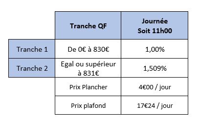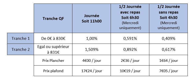 Inscription définitive. Inscription à la journée avec repas. Pas de minimum de jour par semaine.