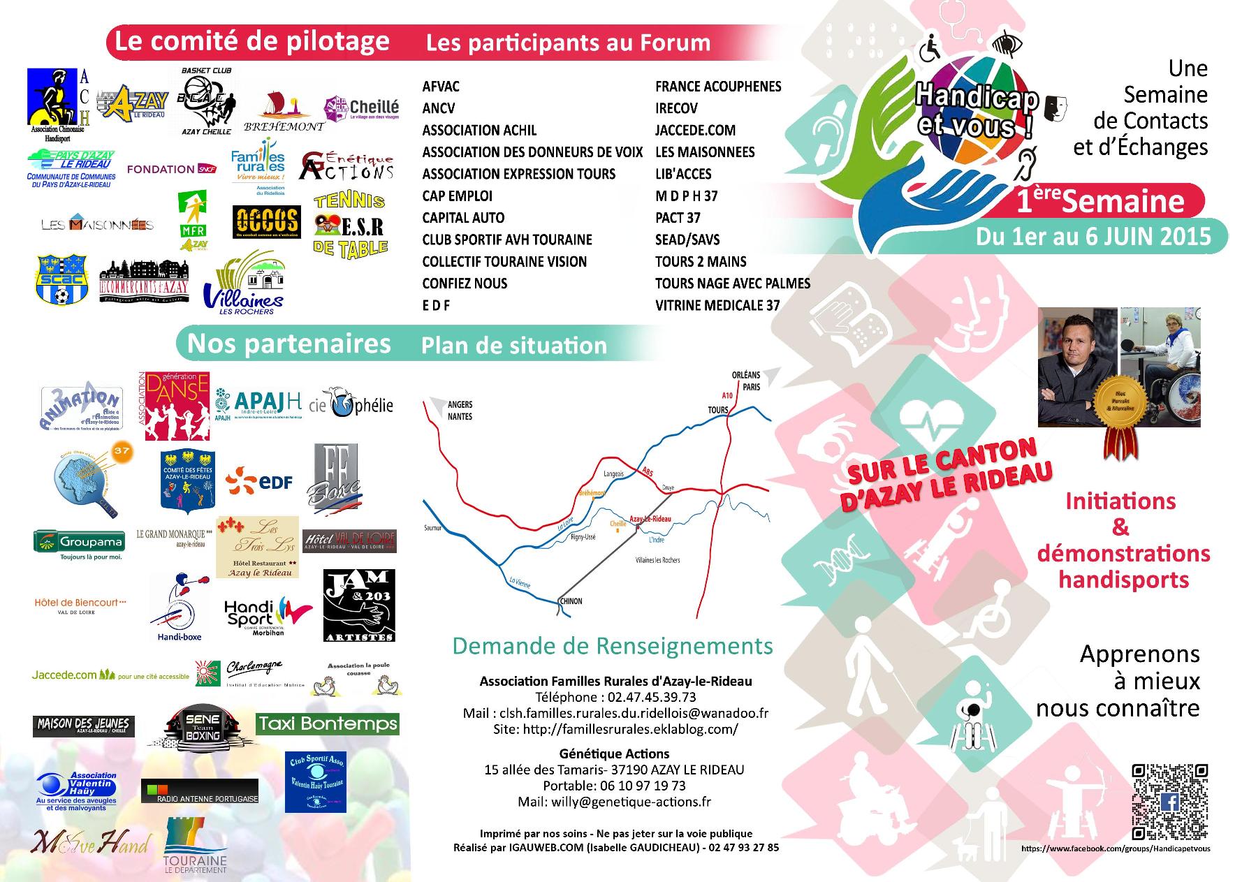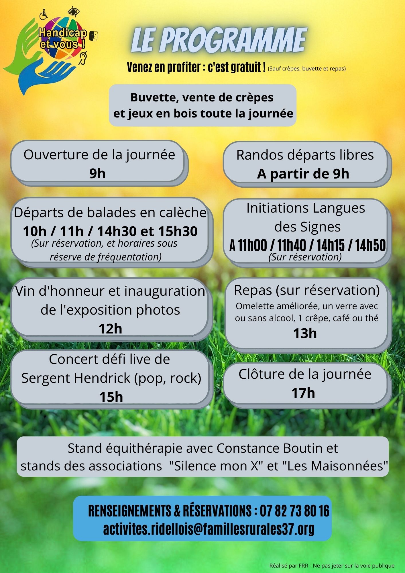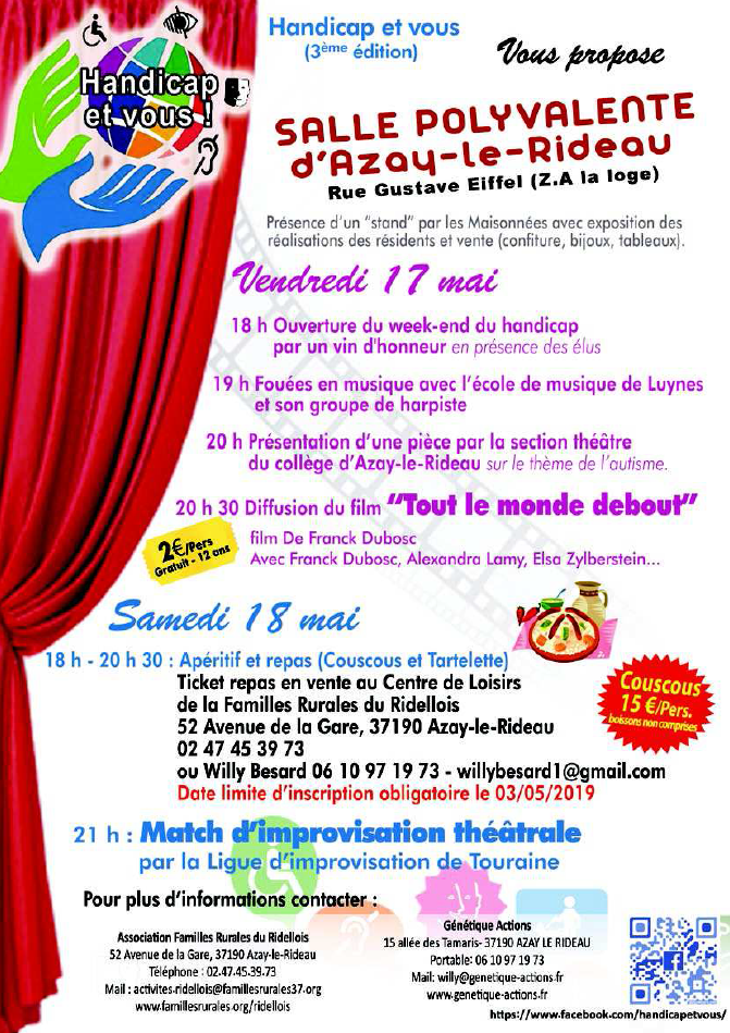 A l’initiative des associations « Génétique actions » et « Familles Rurales du Ridellois », l'action « Handicap et Vous » a pour objectifs de sensibiliser population et élus sur les handicaps, de mettre en lumière les points à faire évoluer, mais également les aspects positifs (savoirs faire, réalisations de personnes en situation de handicap).