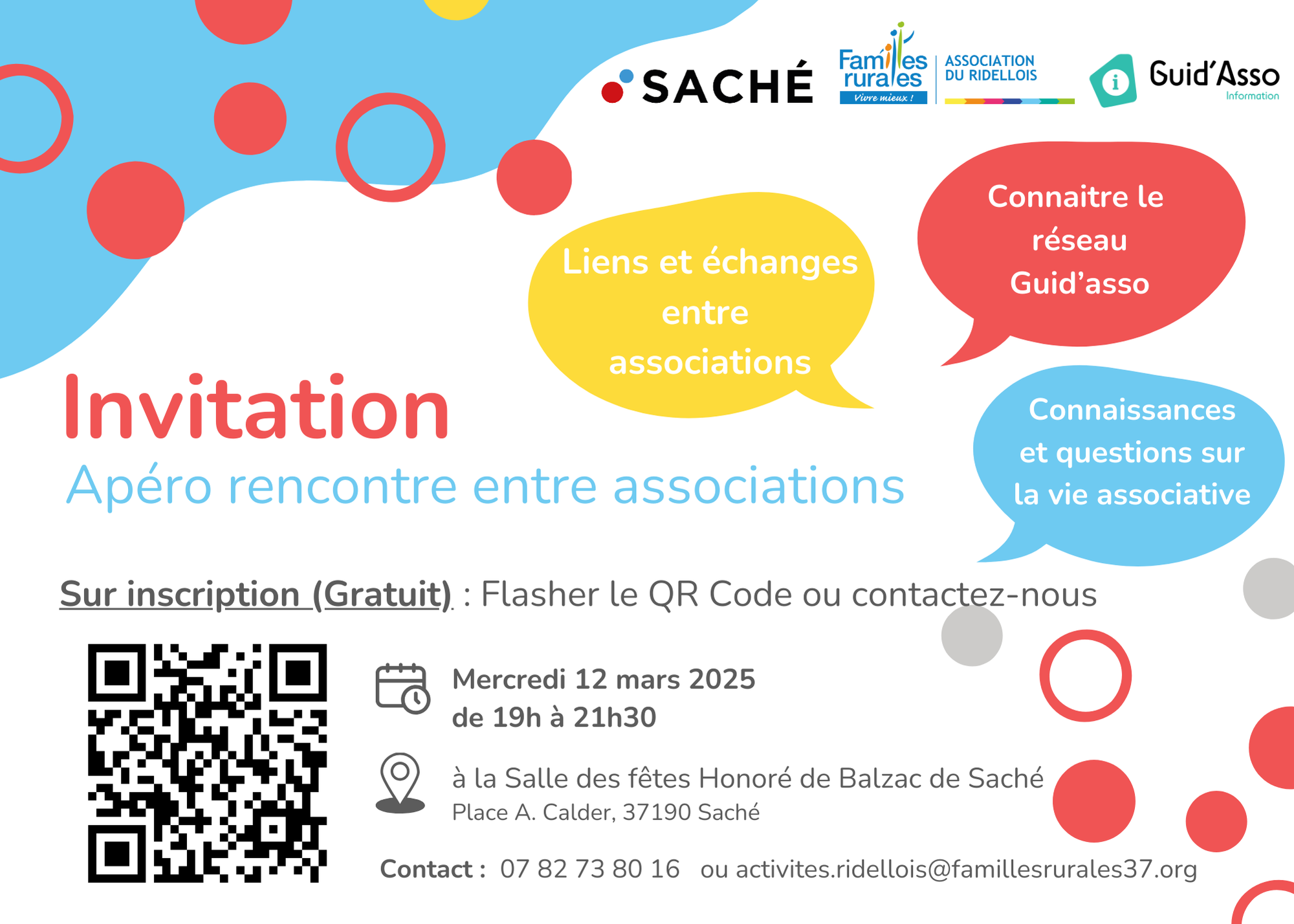 L'association Familles Rurales du Ridellois en tant qu’informateur du réseau Guid’Asso invite les associations du Ridellois à participer à :