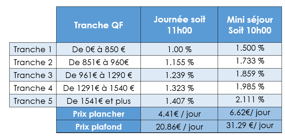 Tarif selon votre quotient familial :