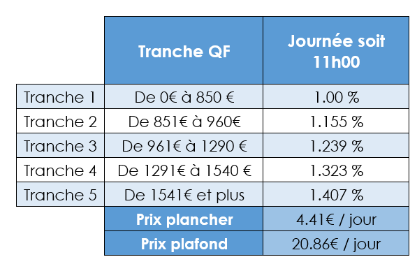Inscription définitive. Inscription à la journée avec repas. Pas de minimum de jour par semaine.