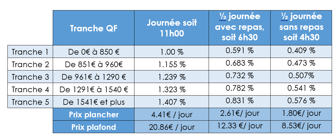 Tarif selon votre quotient familial :