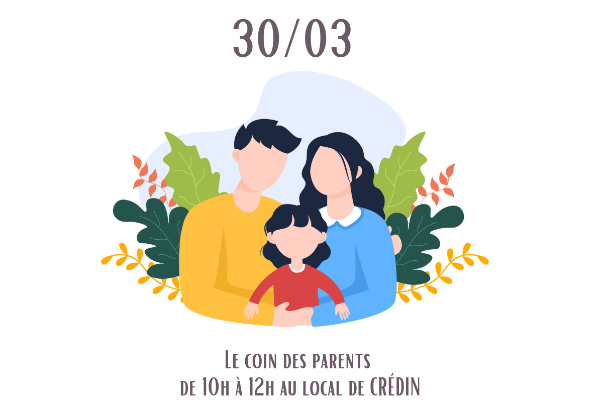 Le coin des parents : le samedi 30 mars de 10h à 12h à Crédin