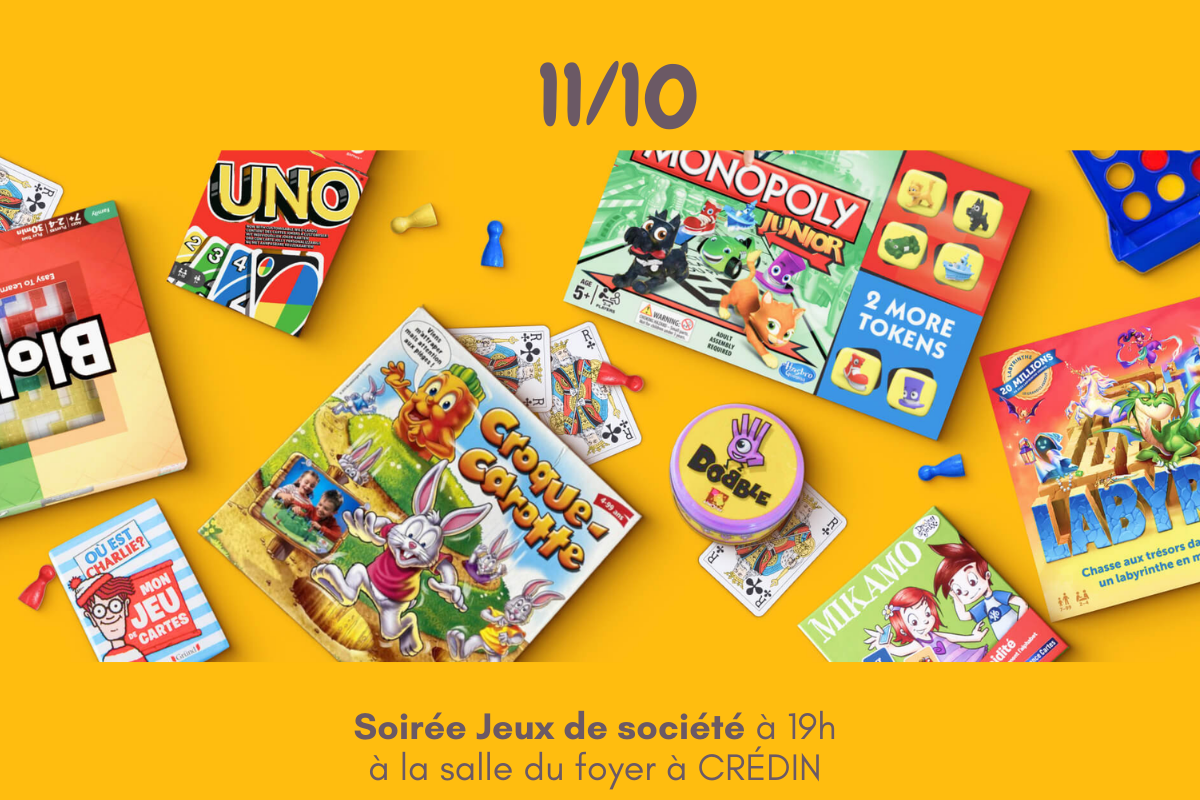 Vendredi 11 octobre, soirée jeux à Crédin, à partir de 19 heures