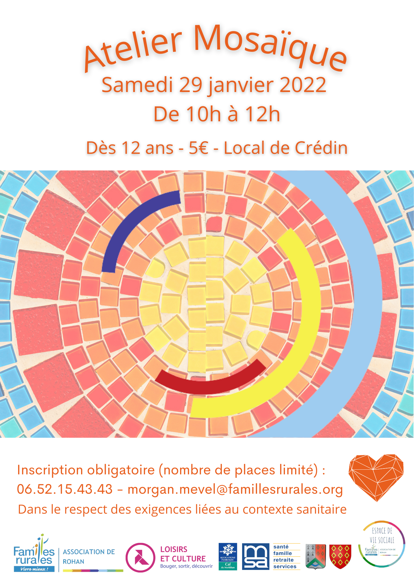 L'association propose un atelier création en Mosaïque ouvert aux adultes et aux jeunes à partir de 12 ans/