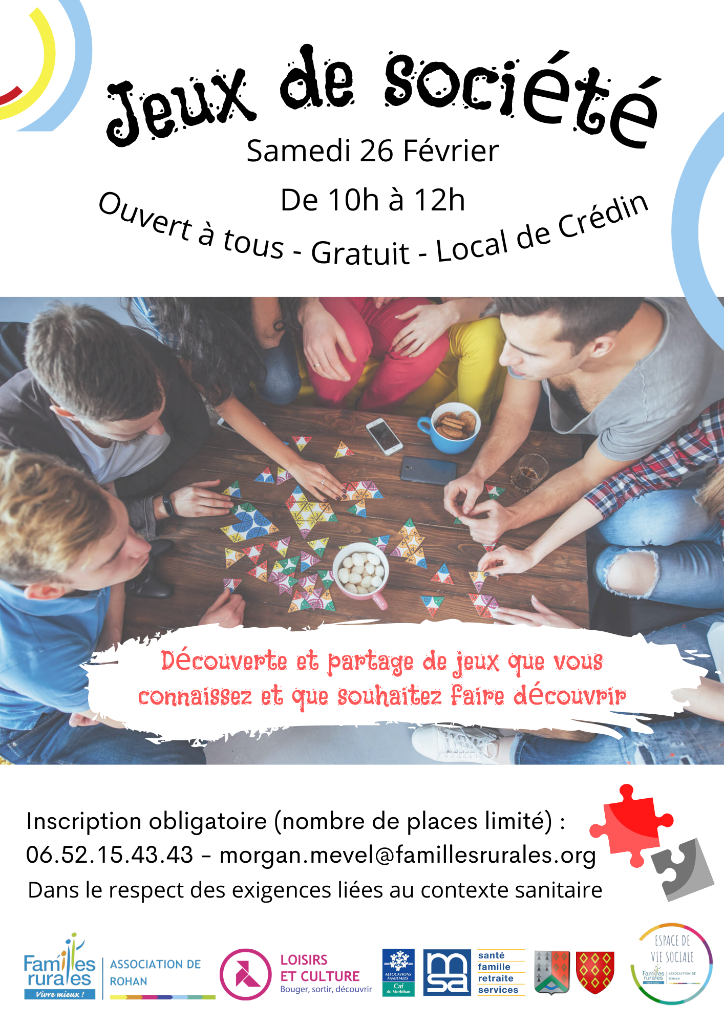28 janvier 2022 De 10h à 12h le samedi 26 février, venez partager un moment sympa autour de jeux connus ou à découvrir