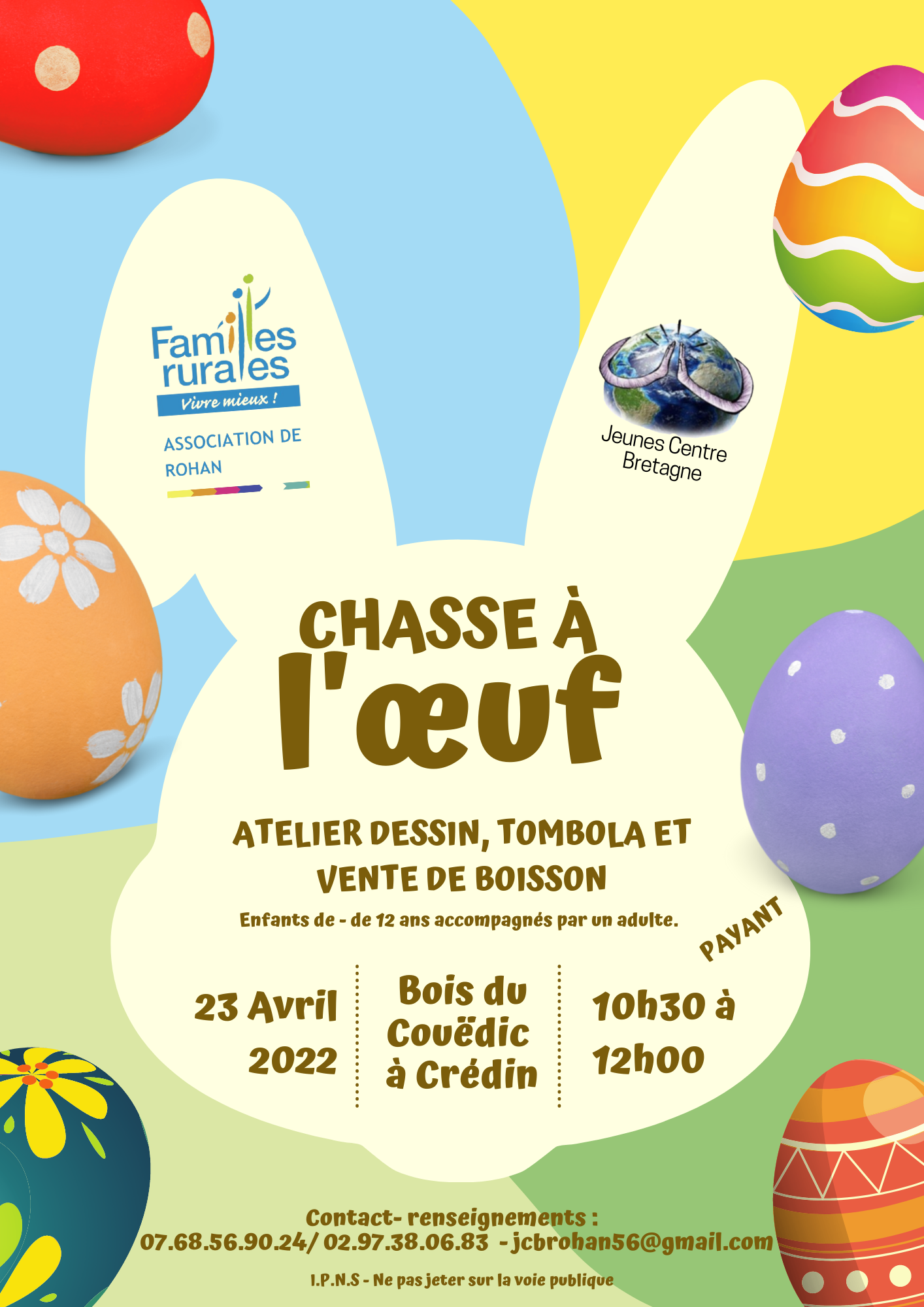 La section Jeunes Centre Bretagne propose une chasse à l'œuf dans le bois du Couëdic à Crédin Samedi 23 Avril à 10h30 animation payante 31 mars 2022
