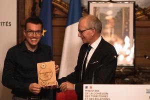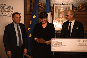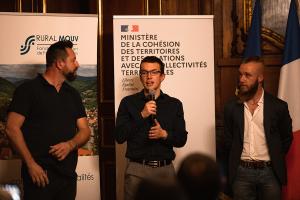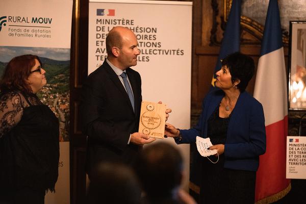 La cérémonie de remise des prix RURAL MOUV s'est déroulée au Ministère Cohésion des territoires & Relations avec les collectivités. Marc CHAPPUIS, directeur-adjoint de cabinet de Jacqueline GOURAULT, Ministre de la Cohésion des territoires et des relations avec les collectivités territoriales et de Joël GIRAUD, Secrétaire d’Etat en charge de la ruralité, a accueilli chaleureusement les porteurs de projet soutenus par RURAL MOUV, aux côtés de Patrice Joly, Sénateur de la Nièvre et président de Nouvelles Ruralités - Le Parlement rural Français. Un beau symbole qui atteste du rôle important que joue le monde associatif et la société civile dans la dynamisation des territoires ruraux et dans la prise en compte des besoins quotidiens des habitants des territoires ruraux.