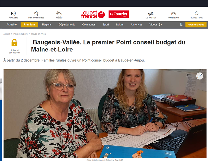 Retrouvez l'article de Ouest-France sur le Point Conseil Budget de Baugé-en-Anjou, 14 novembre 2019