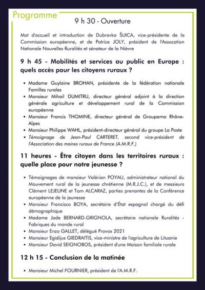 Guylaine Brohan, présidente de la fédération nationale Familles Rurales, a participé à une table-ronde "Mobilités & services au public en Europe : quels accès pour les citoyens ruraux ?".