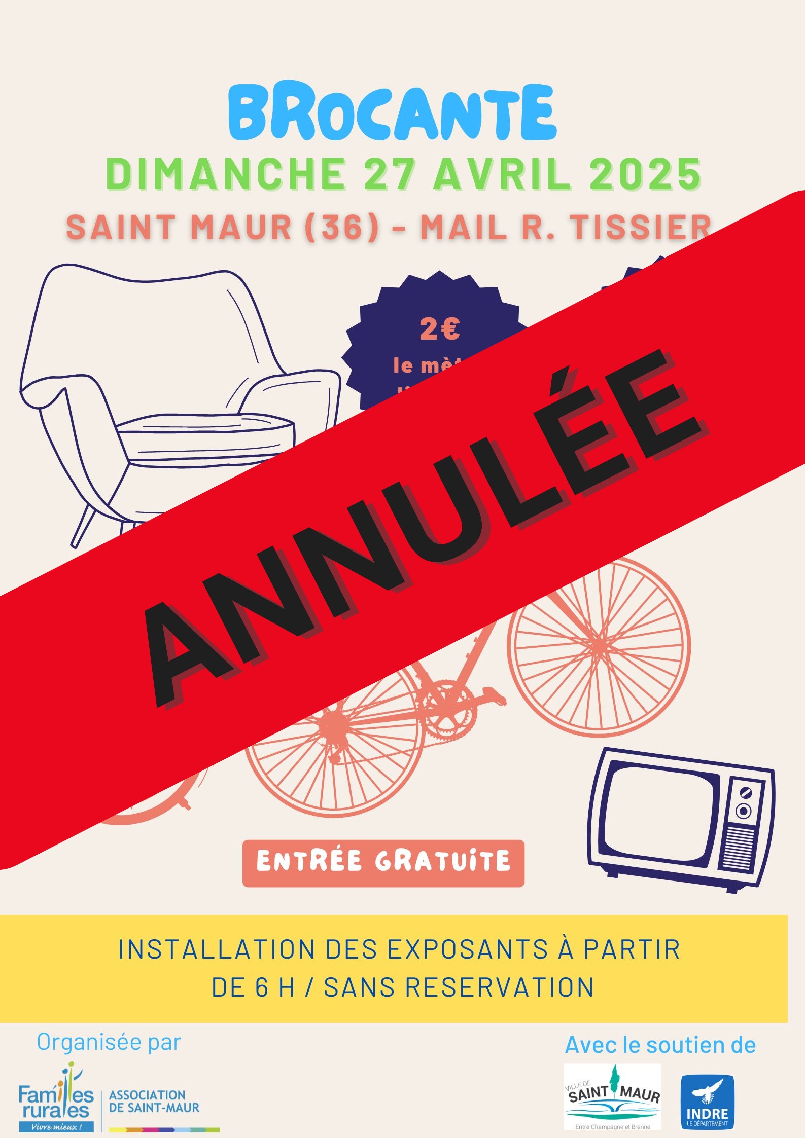 ATTENTION : ANNULATION de la brocante prévue le dimanche 27 avril 2025