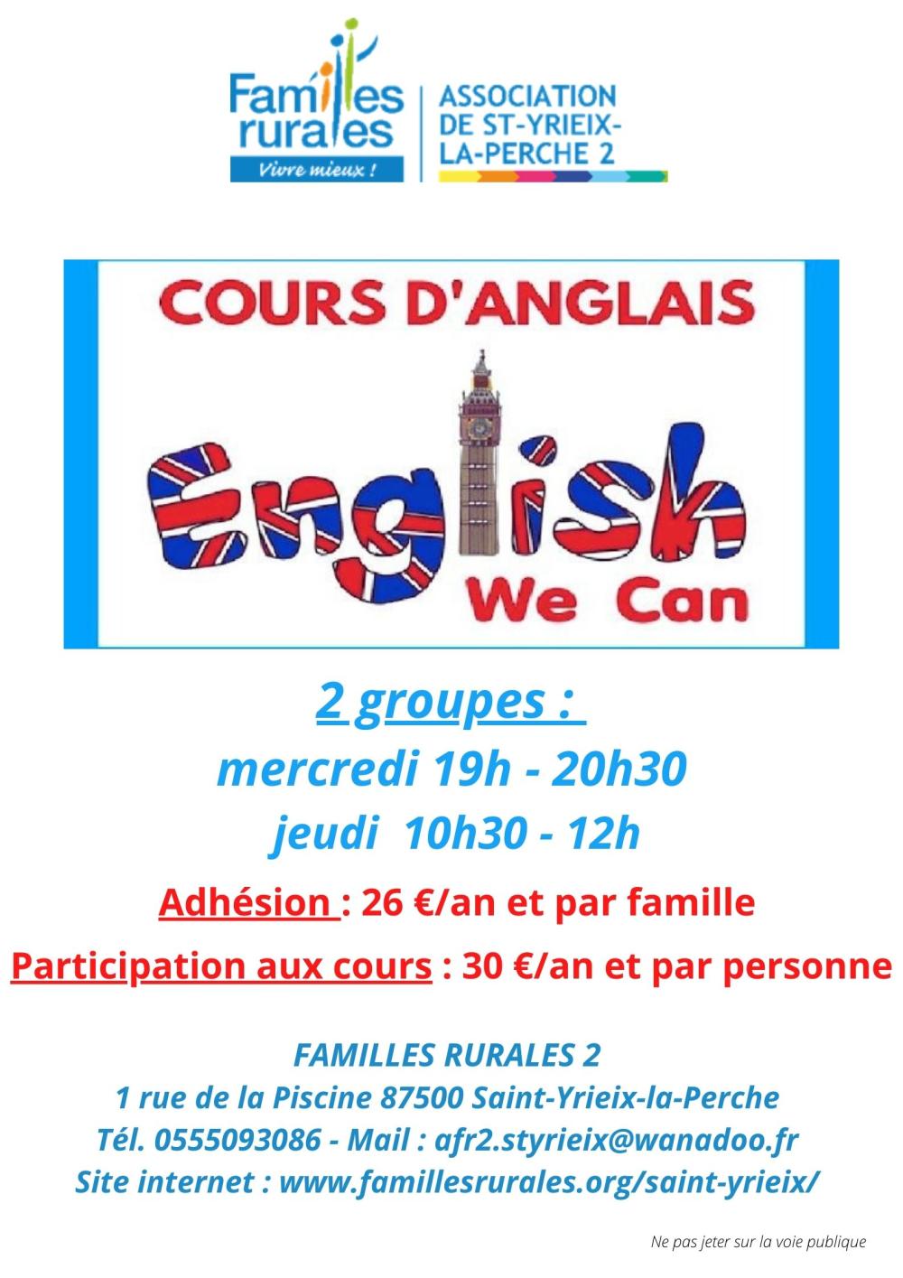 Cours d'anglais French courses OASIS : lire & écrire le français Atelier Cuisine Séniors apprendre à parler, lire et écrire l'anglaisIntermédiaires mercredi 19h00 - 20h30 avec AndrewAvancés jeudi 10h30 - 12h00 avec MikeDébutants jeudi 10h30 - 12h00 avec Cindy