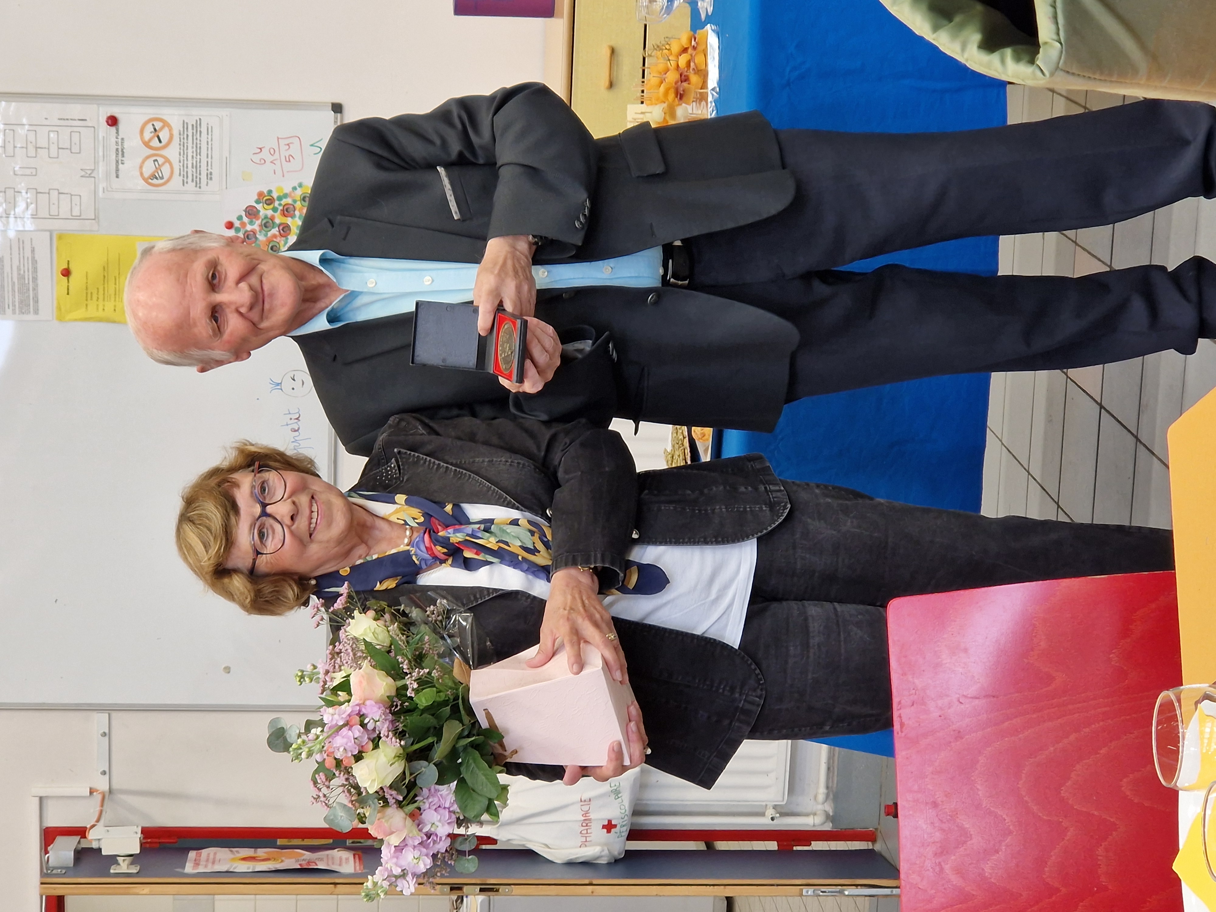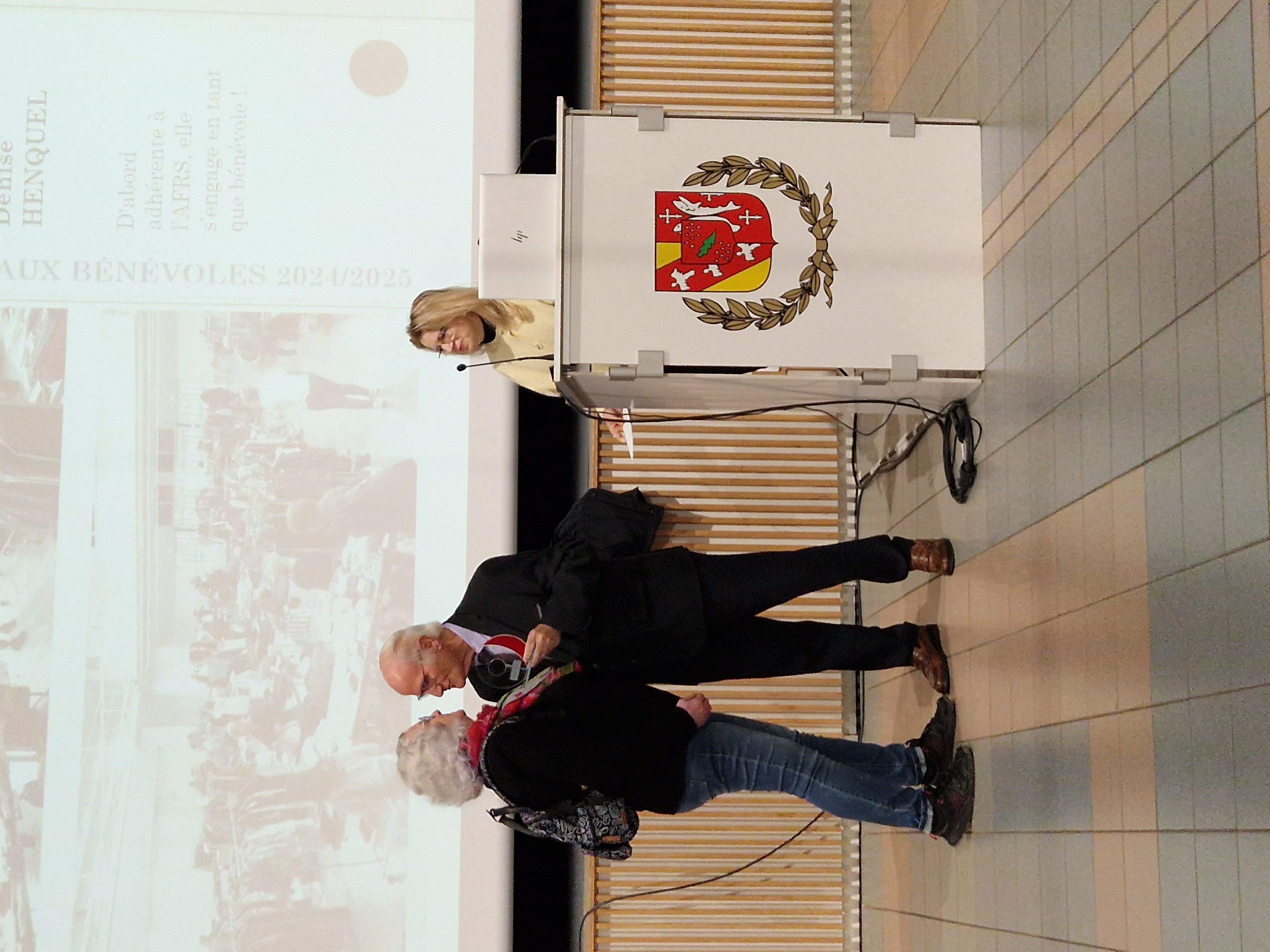 REMISE DE MEDAILLES LE 27/11/2025 à deux BENEVOLES DE L'AFRS : Roselyne FRANCOIS ET Denise HENQUEL Pose d'un support de mosaïque à l'Espace des Parapluies DÉPART DE LA PRÉSIDENTE JACKIE GRAESEL, PRISE DE FONCTIONS DE LA NOUVELLE PRÉSIDENTE FRANCOISE BONHOMME DÉPART EN RETRAITE DE MURIEL BARONNAT-NOE
