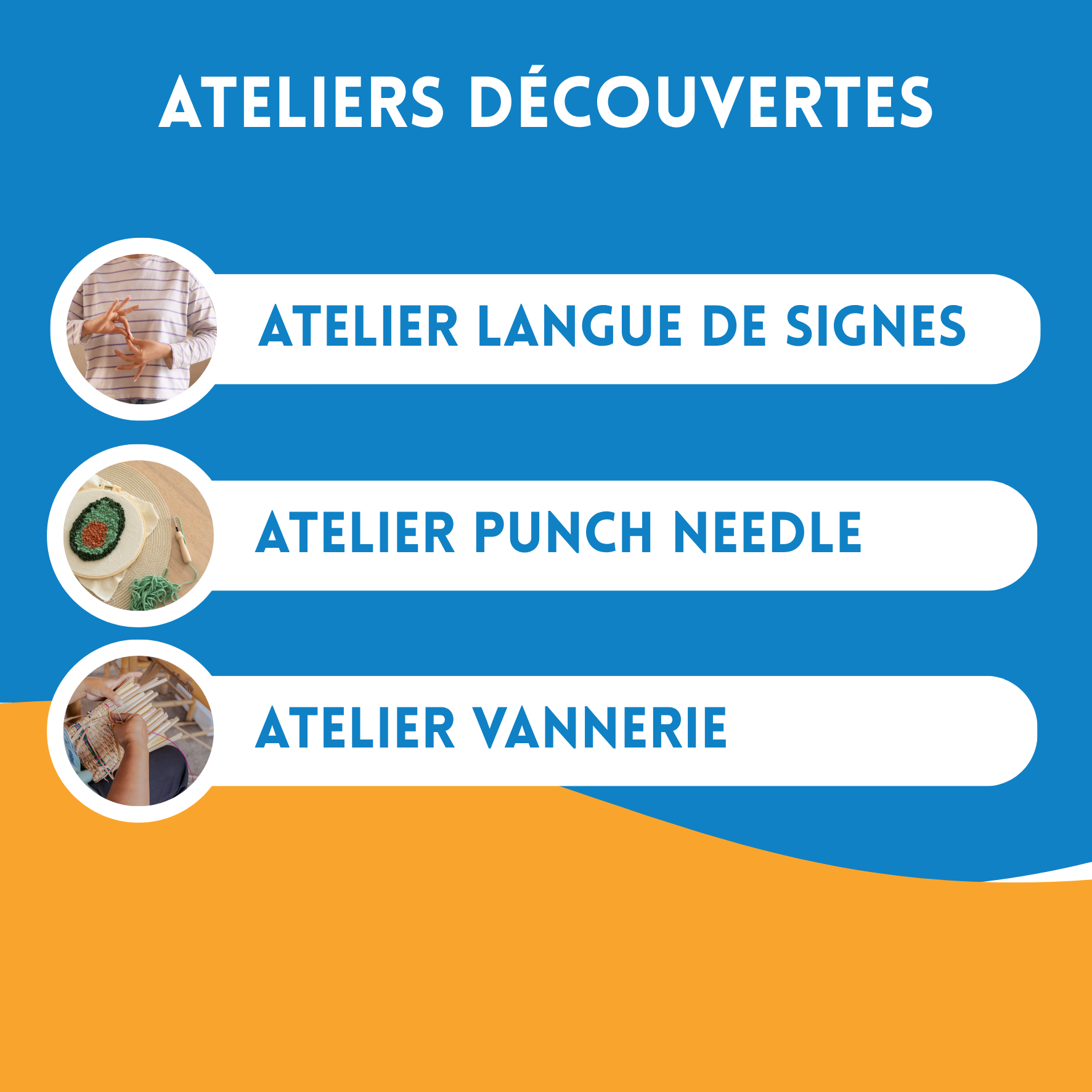 Atelier découverte ,Poterie,Vannerie,langue des Signes