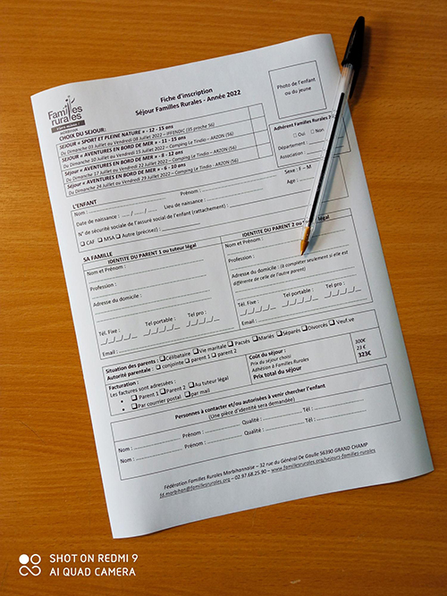 -> Envoyé par mail ou par la poste en faisant le demande soit par téléphone au 02.97.68.25.90 ou par mail à sejours.morbihan@famillesrurales.org en version scannées uniquement.