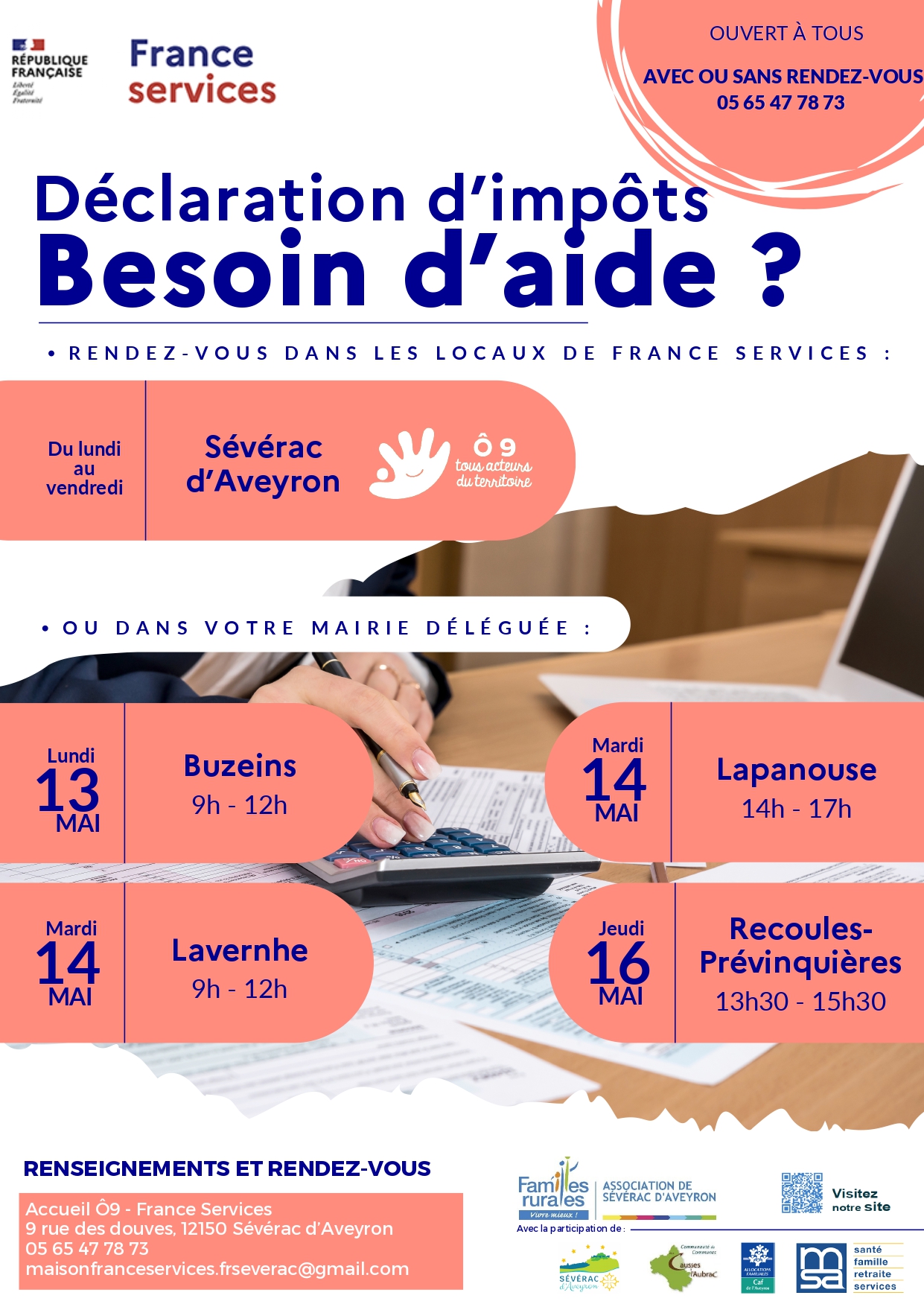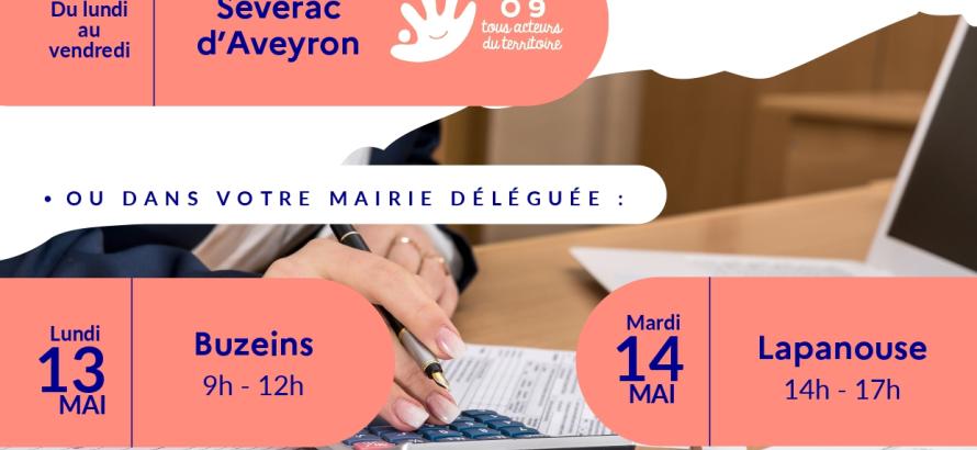 Nos conseillères vous reçoivent sur Sévérac d'Aveyron et se déplacent au mois de mai dans les mairies déléguées pour vous accompagner dans votre déclaration d'impots !