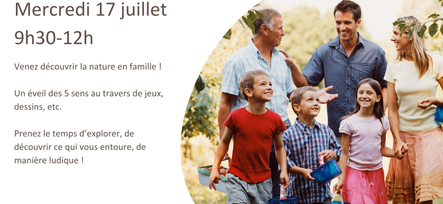Venez explorer la nature en famille ! Stimulez vos cinq sens à travers des jeux, des dessins, et bien plus encore. Prenez le temps de jouer et de découvrir l'environnement qui vous entoure de façon amusante !