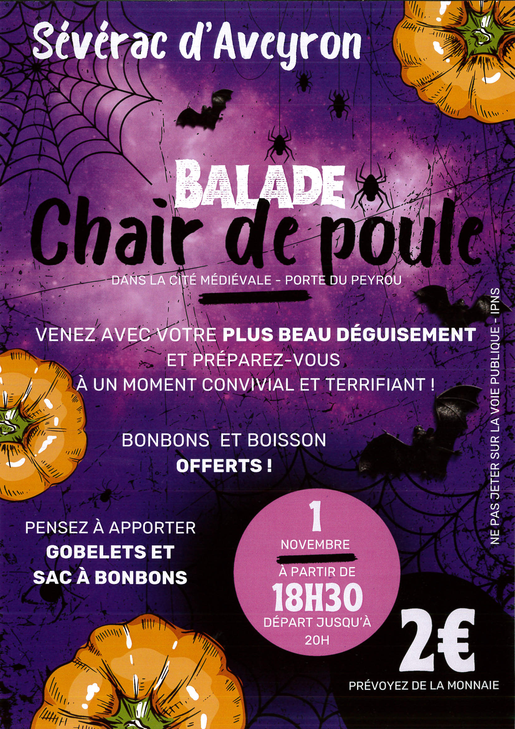 Toute participation aux préparatifs est la bienvenue. Vous pouvez déposer citrouilles et photophores (Ô9 et à Minute Papillon) mais aussi des bonbons (emballés individuellement ou en petits sachets uniquement) O9 rue des Douves, au centre de loisirs, à la crèche ou à la boutique Minute Papillon d'ici le jeudi 31 octobre.