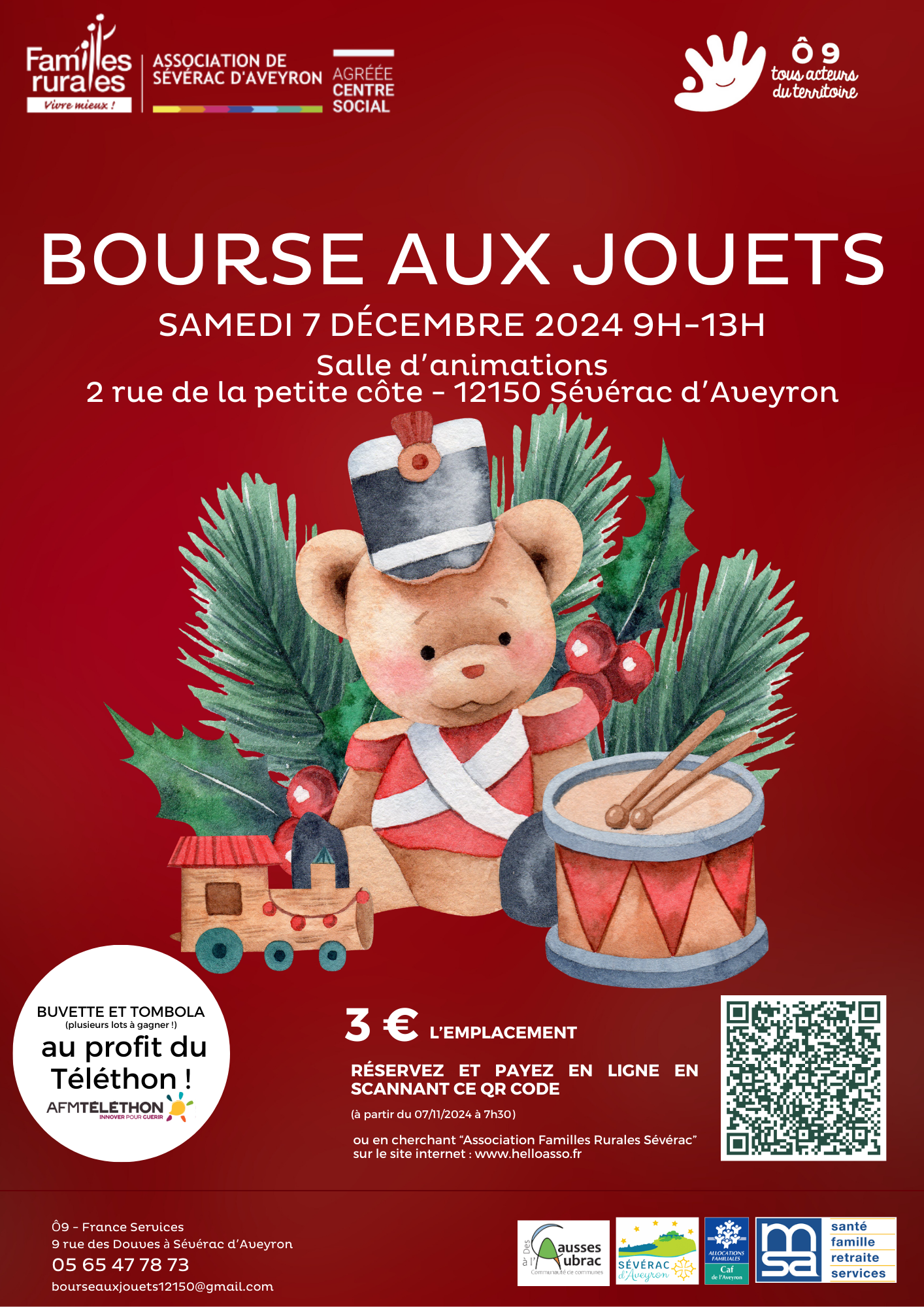 L'association Familles Rurales de Sévérac d'Aveyron organise sa traditionnelle BOURSE AUX JOUETS ! Notre événement vise à favoriser l'économie circulaire sur notre territoire.