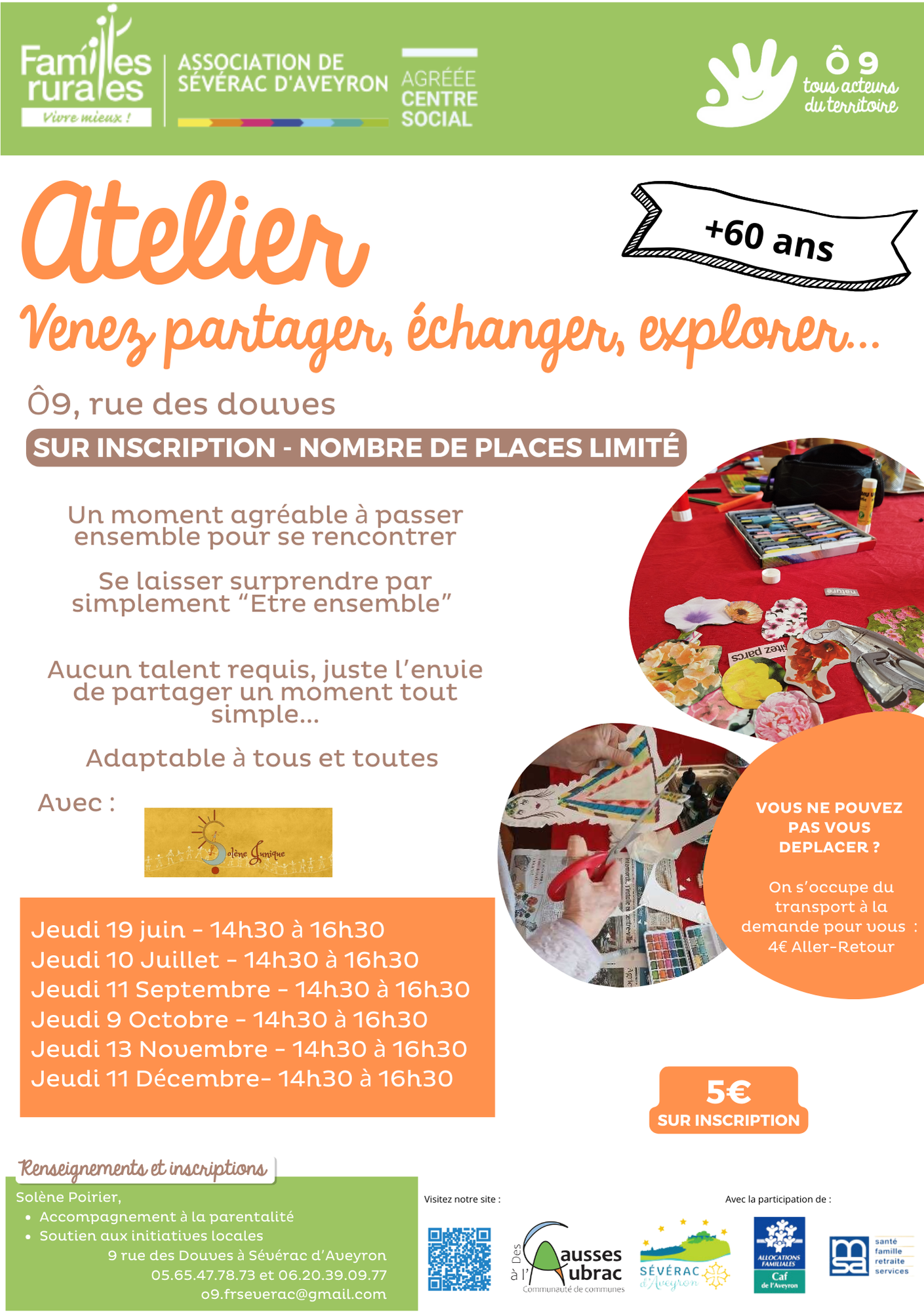 Laissez-vous tenter par des ateliers de partage en famille, entre parents ou encore spécialement pour les + de 60 ans.