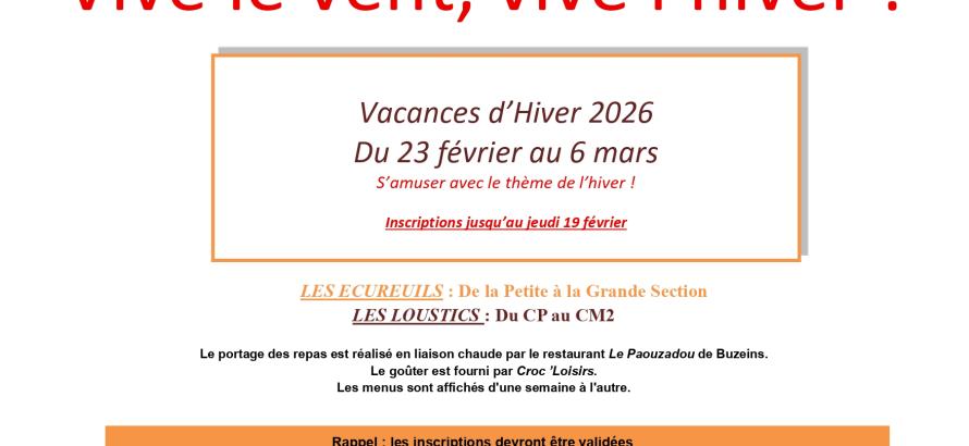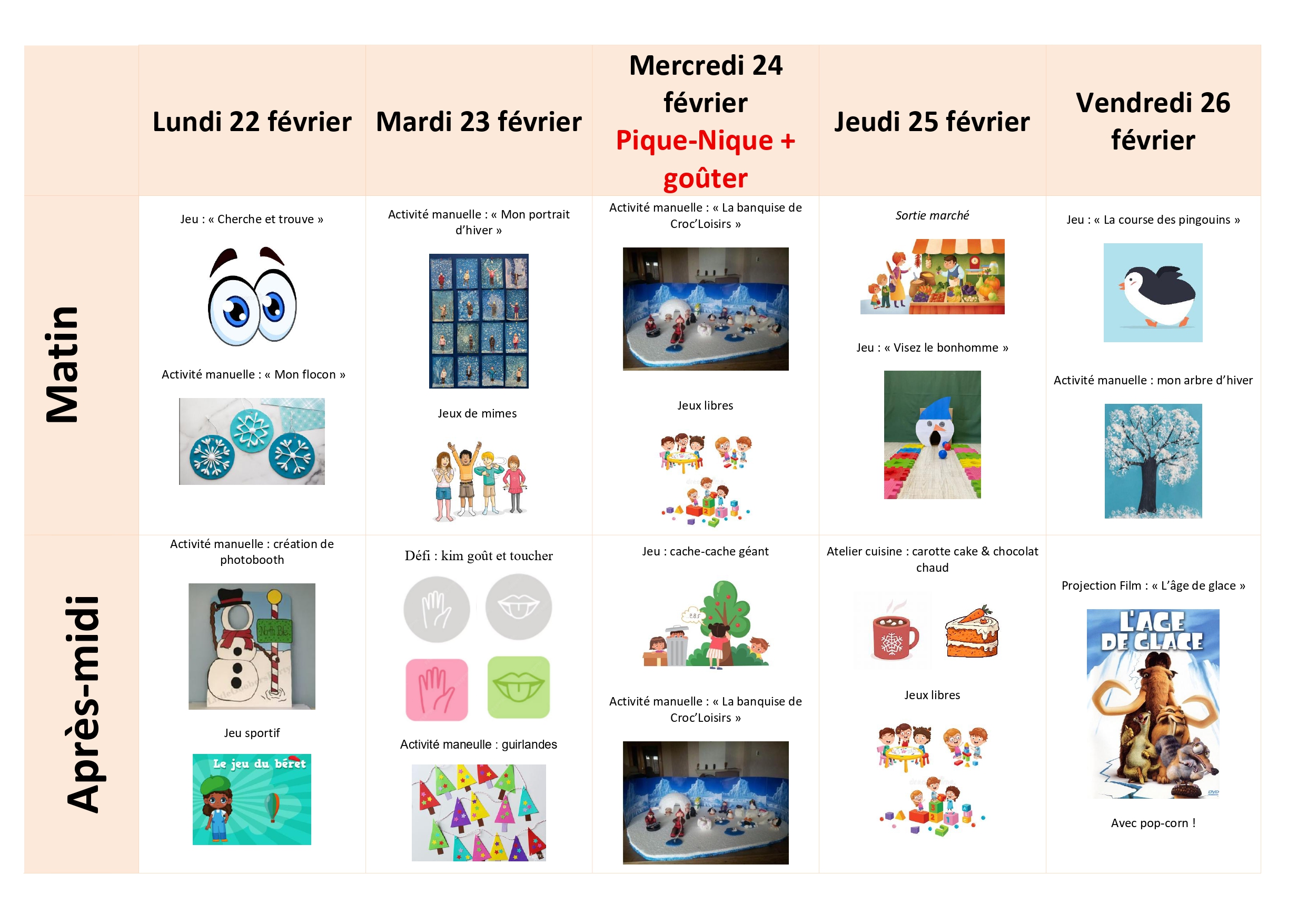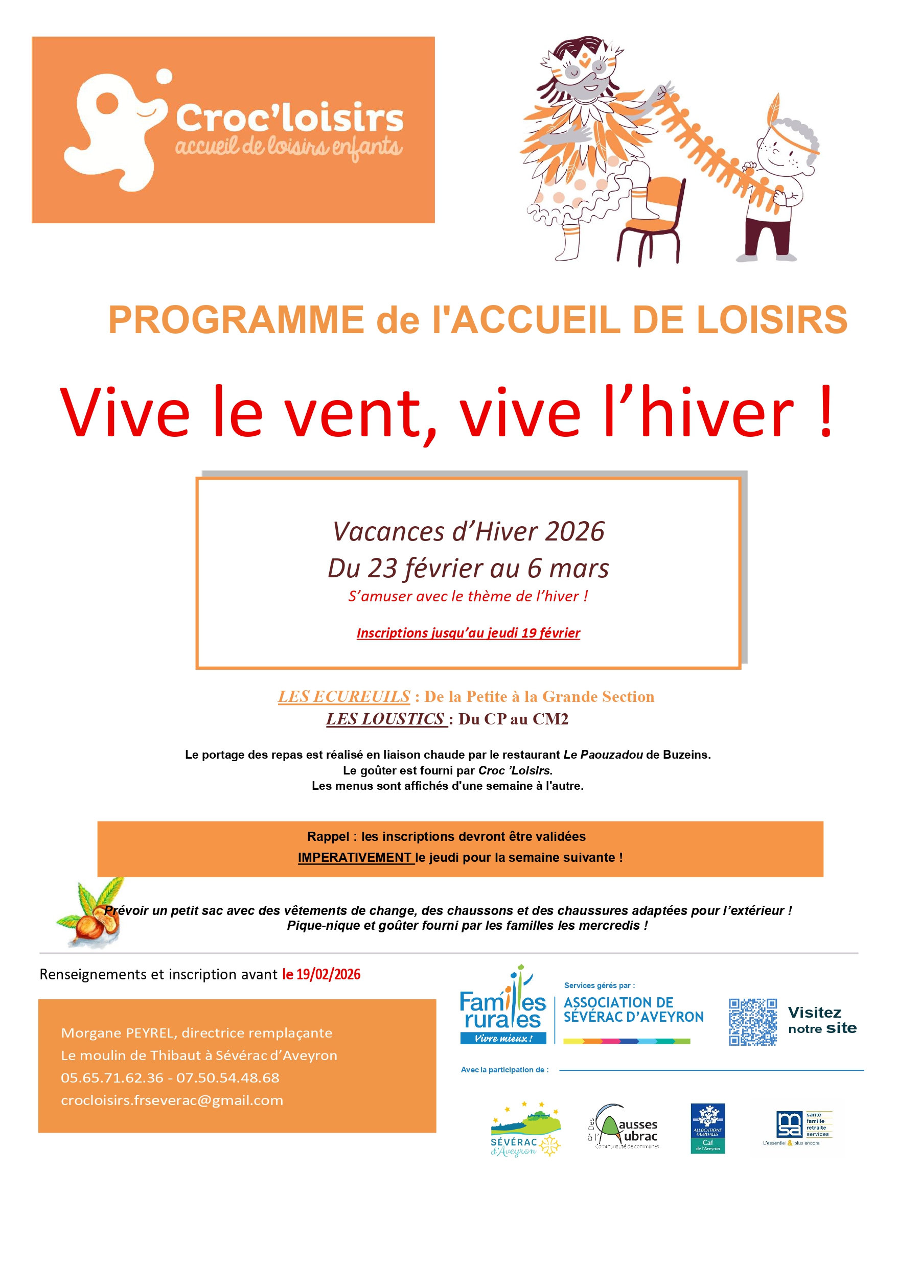 Programme des vacances d'hiver à Croc'Loisirs !