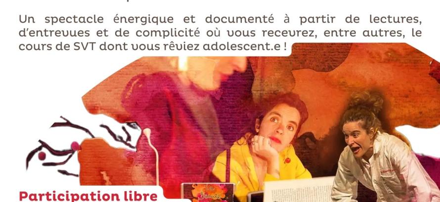 Un spectacle énergique et documenté à partir de lectures, d’entrevues et de complicité où vous recevrez, entre autres, le cours de SVT dont vous rêviez adolescent.e !