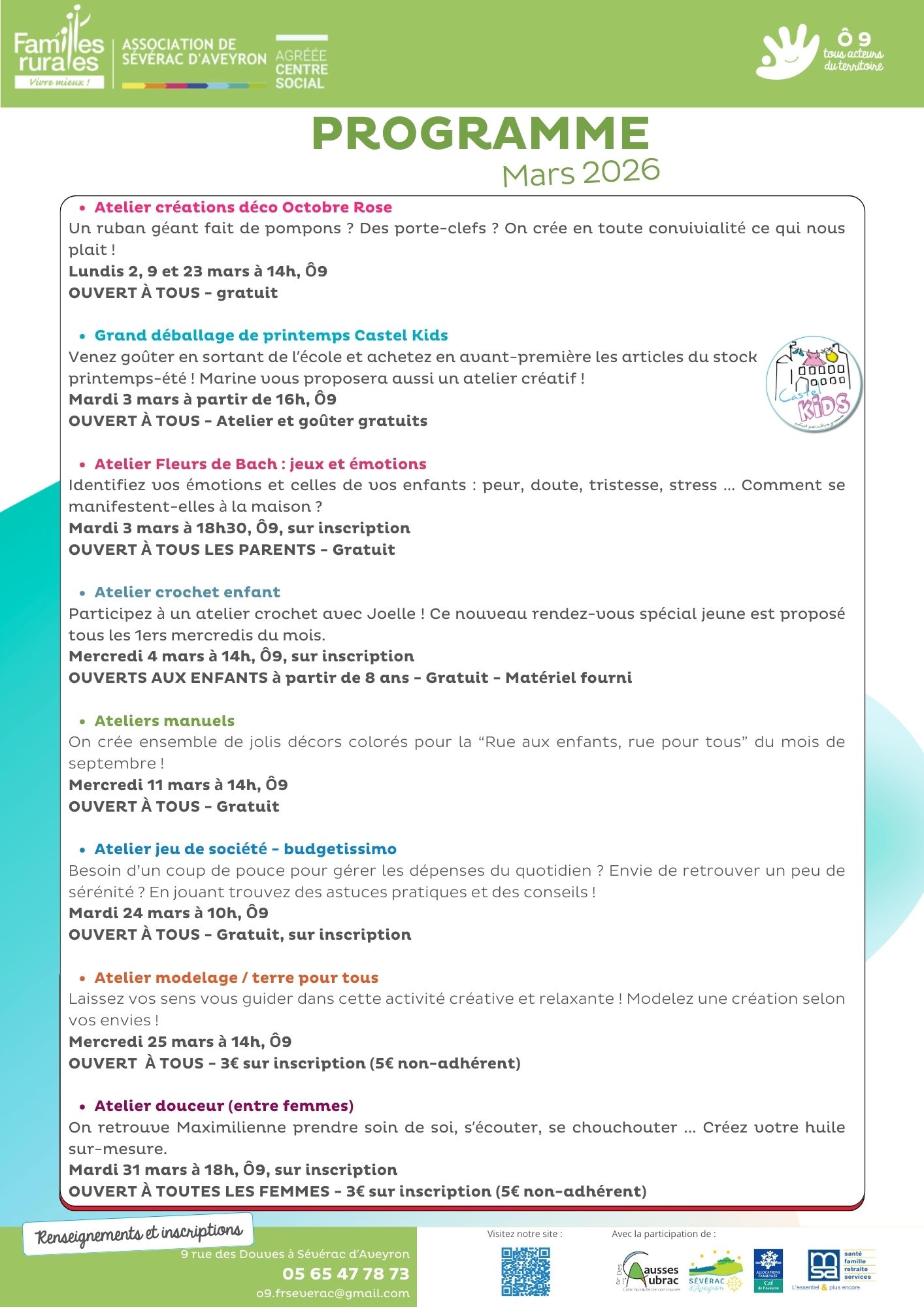 L’association a pour principal objectif d’essayer de répondre au mieux aux besoins de la population locale et c’est dans cet esprit que chacun de ses services est pensé et développé. Ainsi, Ô 9 organise diverses animations qui sont toutes portées, impulsées, soutenues ou animées par des habitants.