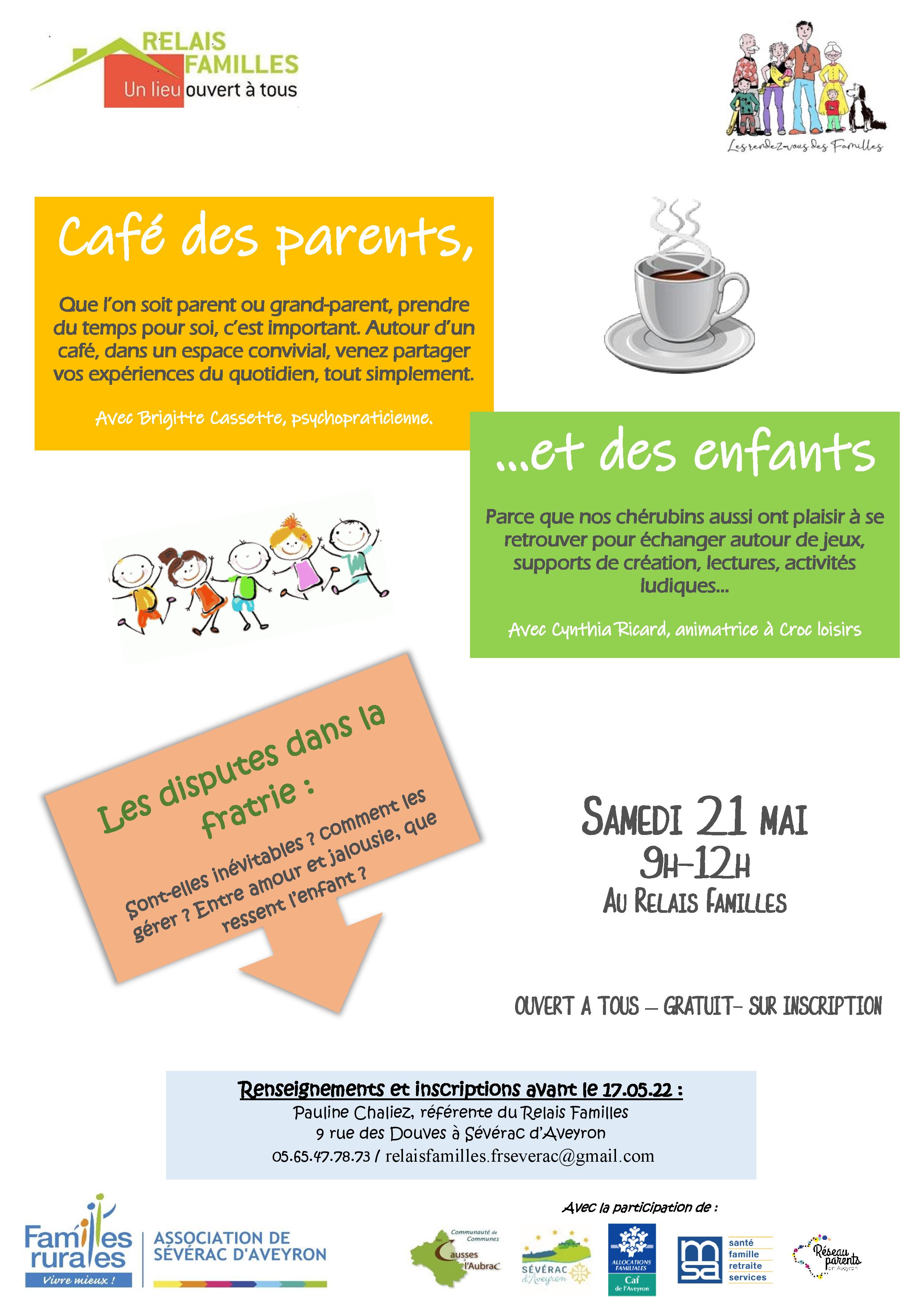 Rdv le samedi 21 mai de 9h à 12h au Relais Familles pour évoquer "les disputes dans la fratrie".