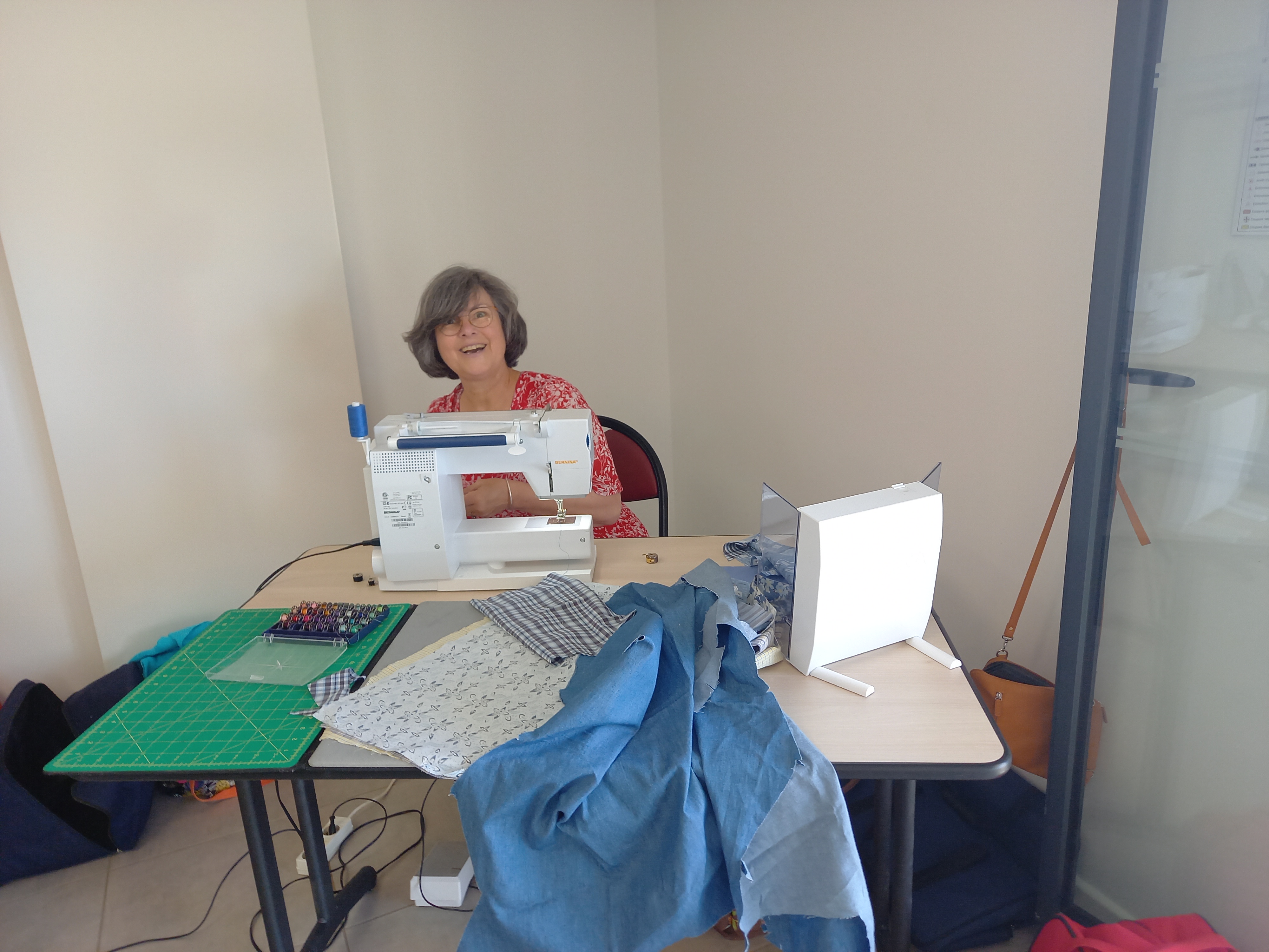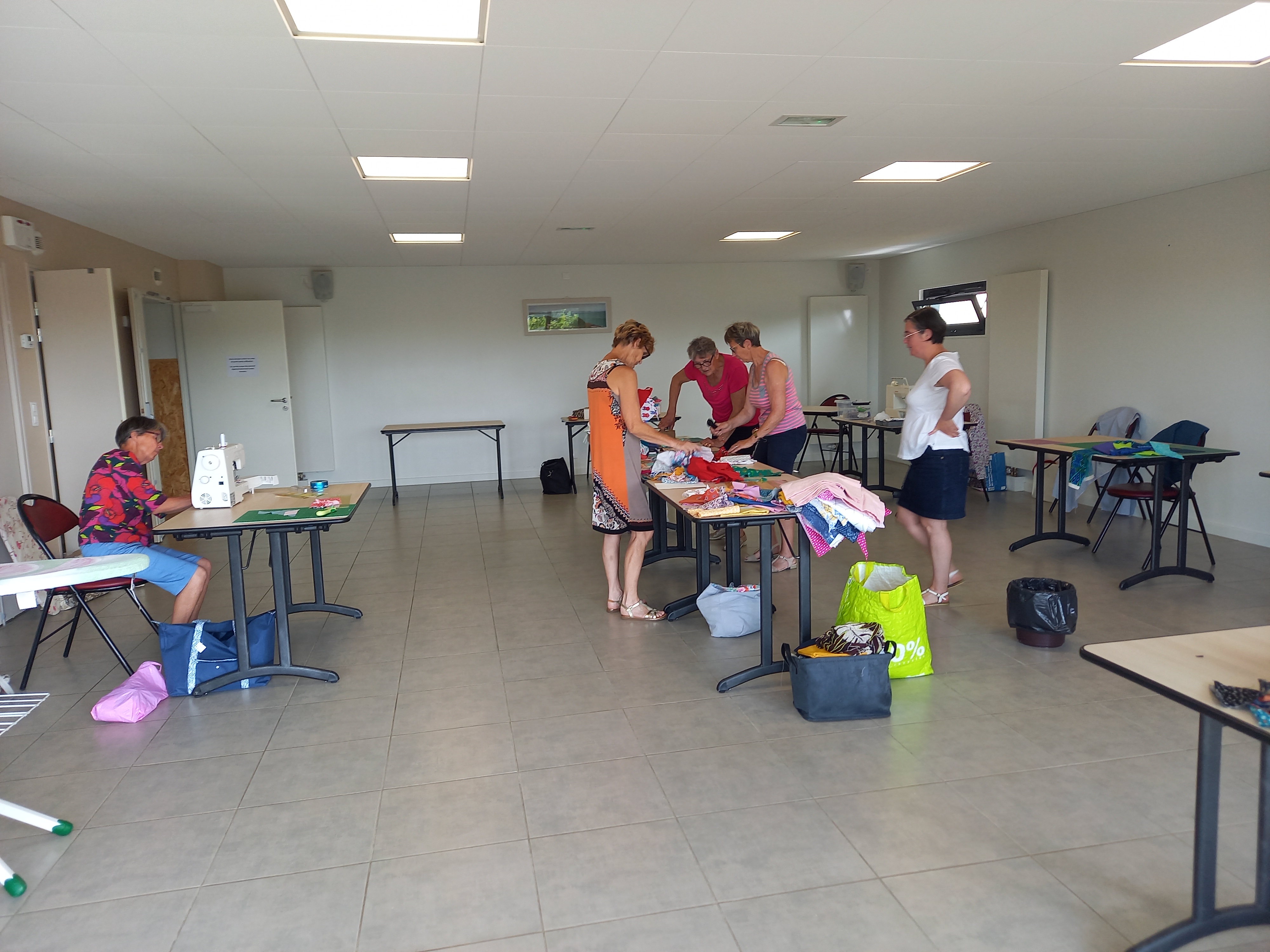 Animés par Lyson de Coudre à 4 mains, les ateliers " Couture " se déroulent dans la salle de la mairie de Saint-Aaron.