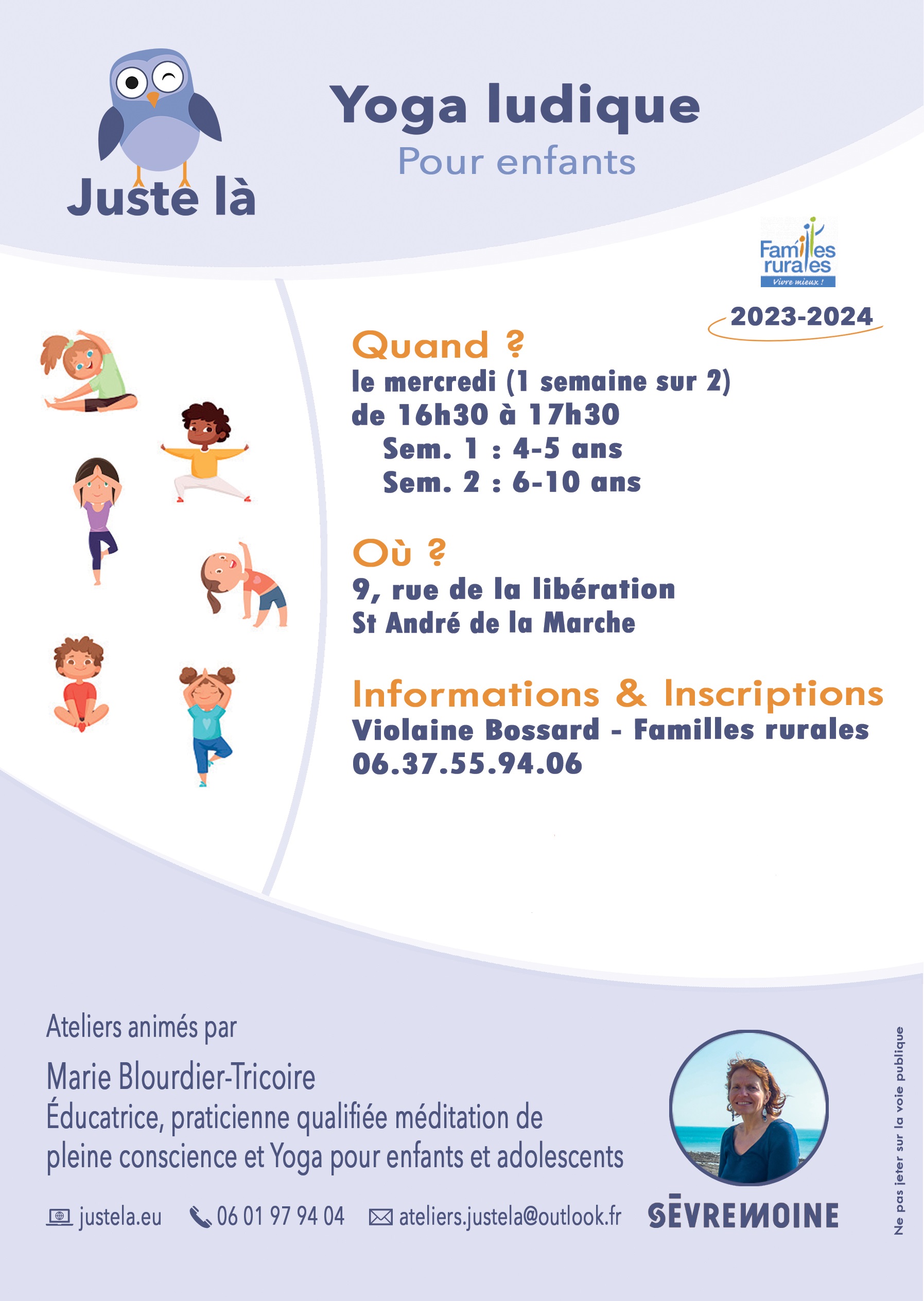 Des séances de yoga ludique pour enfants, de 4 à 10 ans, sont proposés, à la salle des loisirs