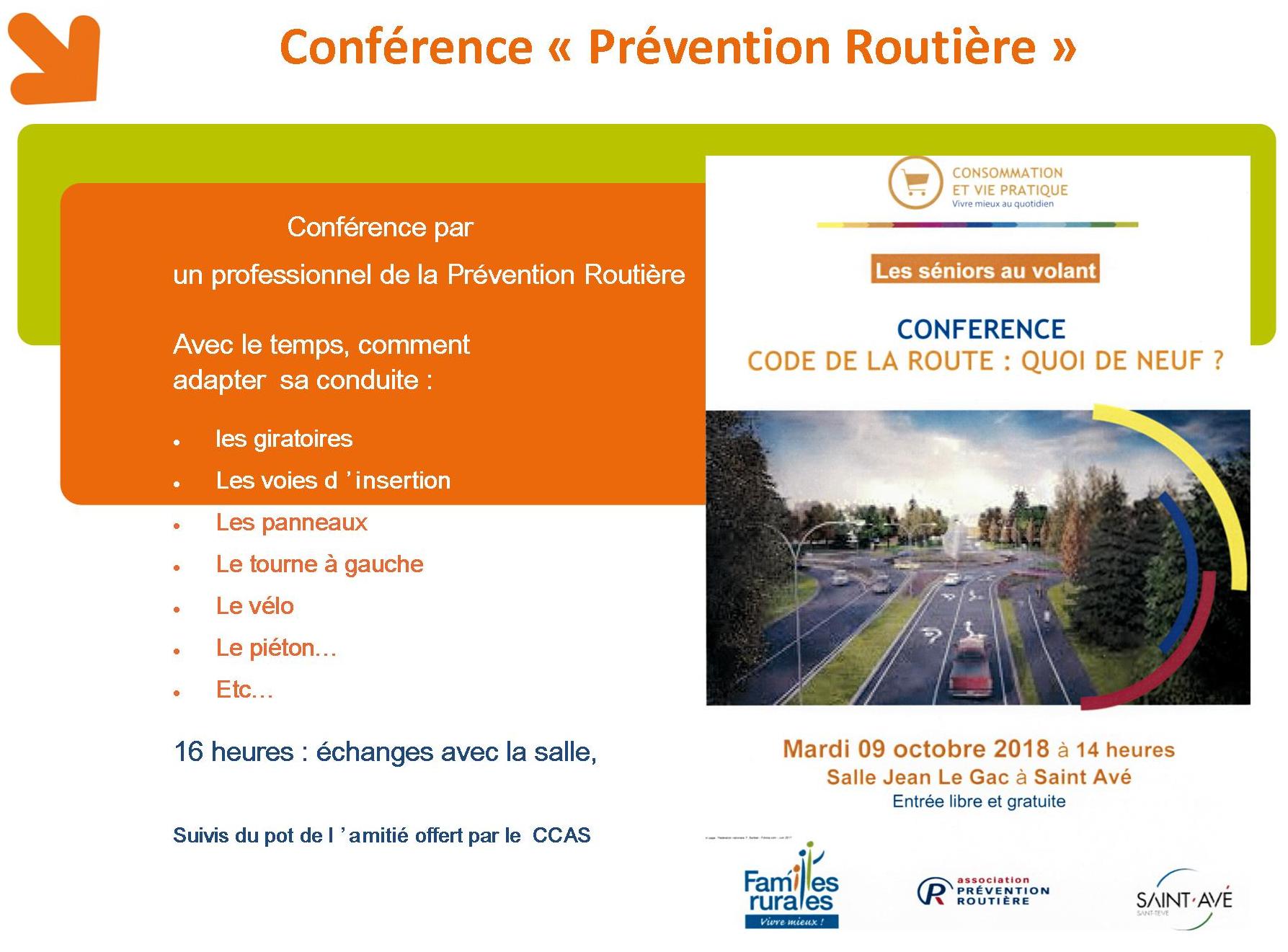 Conférence suivie d'une journée pratique (sur inscription) : test divers - conduite en auto-école en partenariat avec l'association PREVENTION ROUTIERE et l'auto-école MAURY de Saint avé.