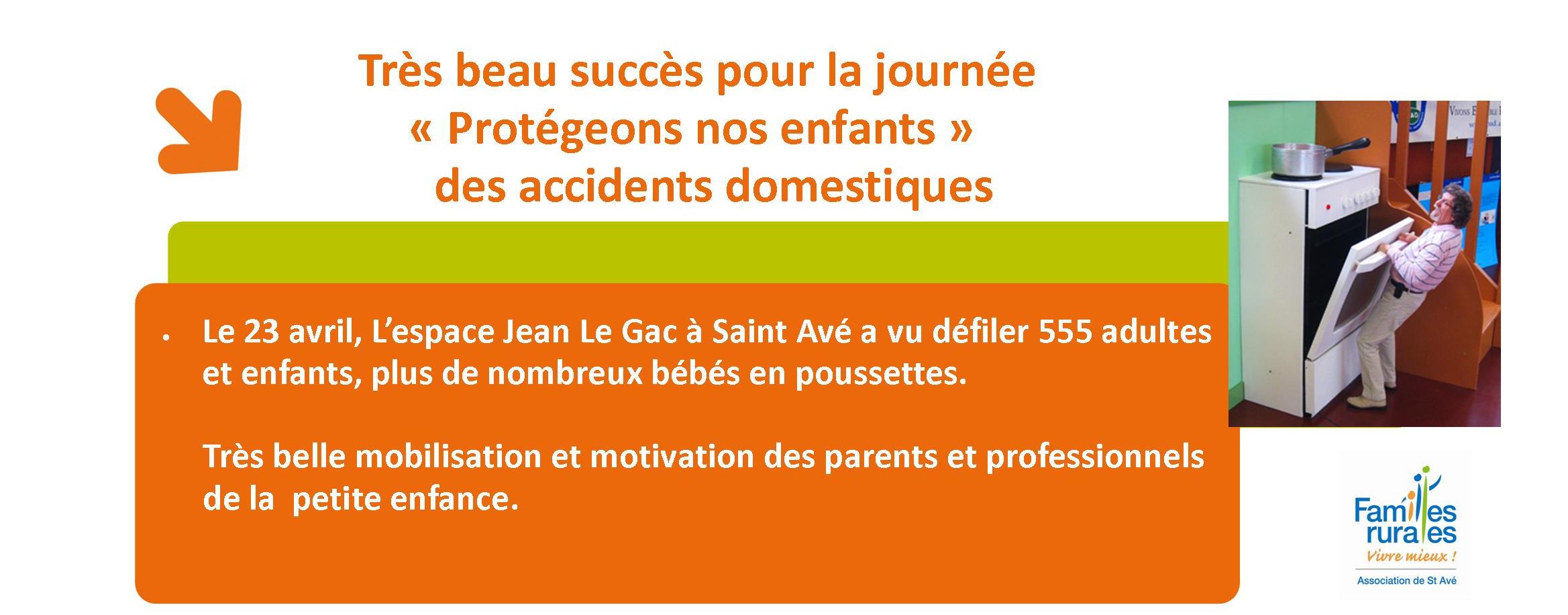 S'il est difficile de chiffrer le coût humain et matériel des accidents évités, l'association familles Rurales de Saint Avé est persuadée que c'est par l'information et la prévention qu'il sera possible de s'attaquer au fléau des accidents domestiques.