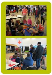 Initiation aux premiers secours par les secouristes et formateurs de la Croix Rouge.