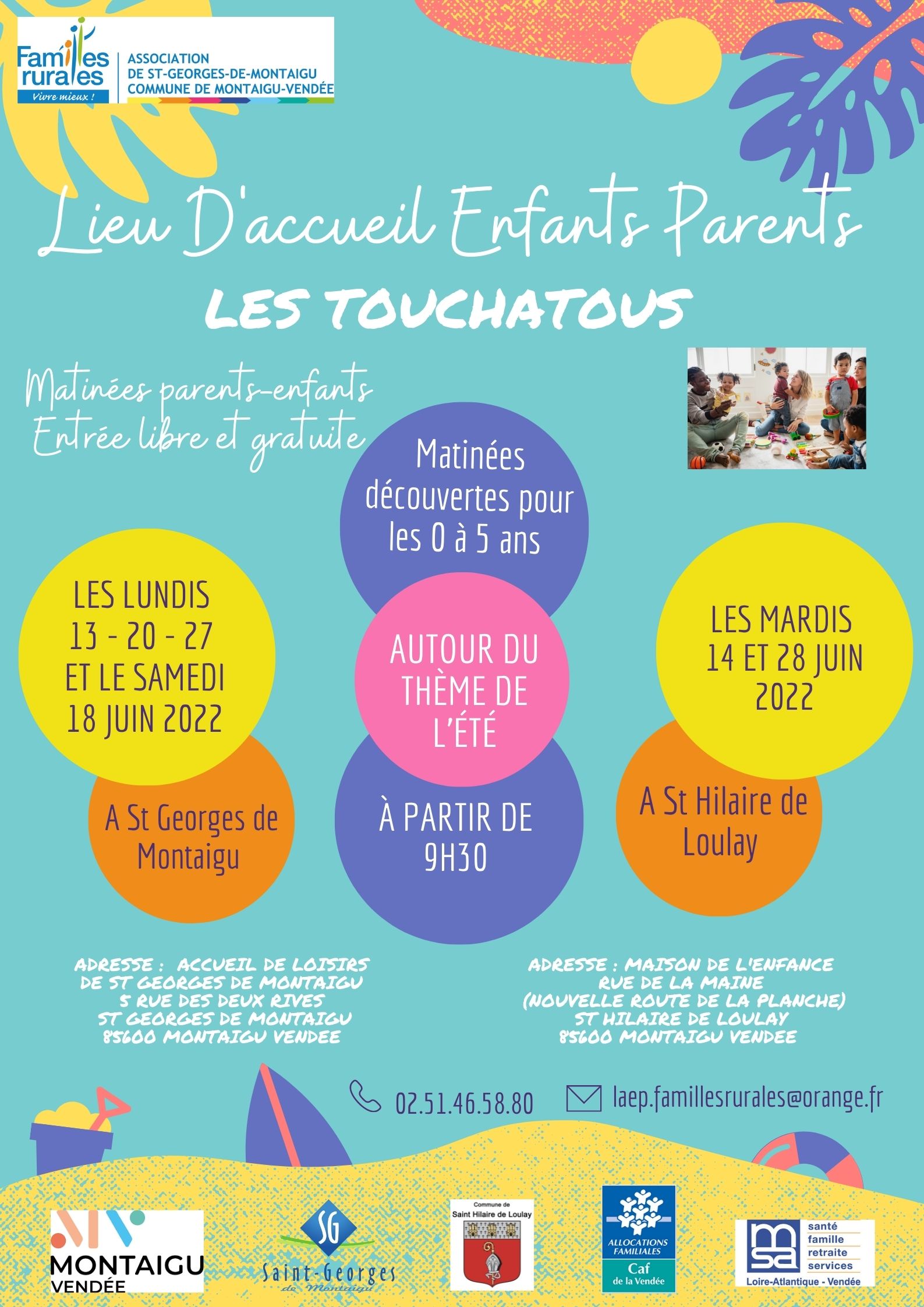 Profitons de ce mois de juin pour découvrir le Lieu d'Accueil Enfants Parents (- 6 ans) "les Touchatous" sur St Georges de Montaigu et St Hilaire de Loulay 11 juin 2022