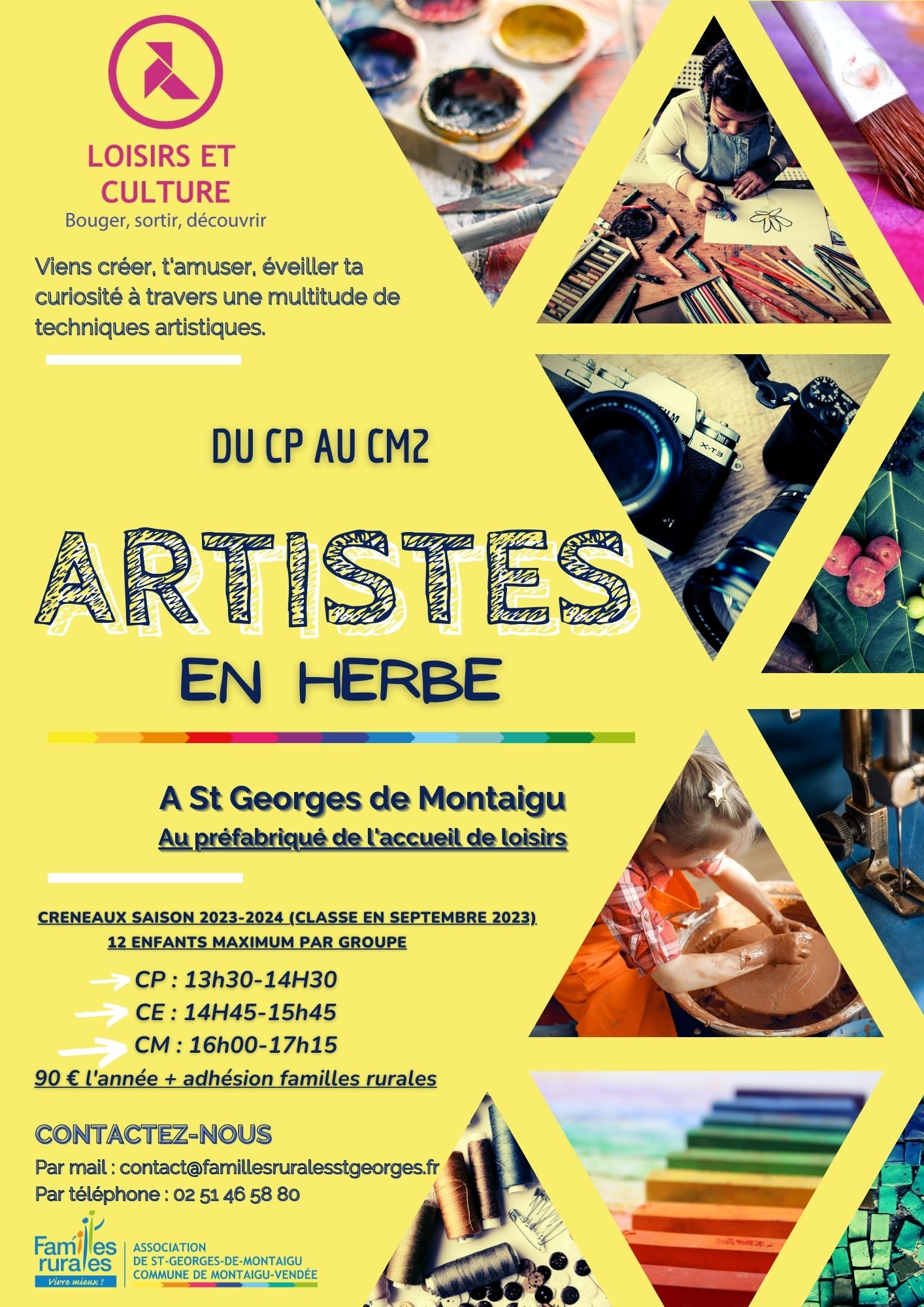 Les cours de ARTISTES EN HERBE se tiennent du mercredi 17 septembre 2025 au mercredi 17 juin 2026, soit :