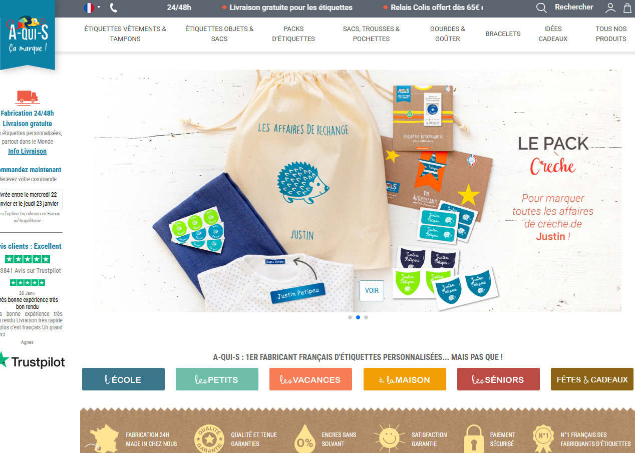 N'oubliez pas notre partenariat avec les étiquettes A-qui-S pour des affaires faciles à retrouver, des cadeaux personnalisés, des messages bienveillants, ...