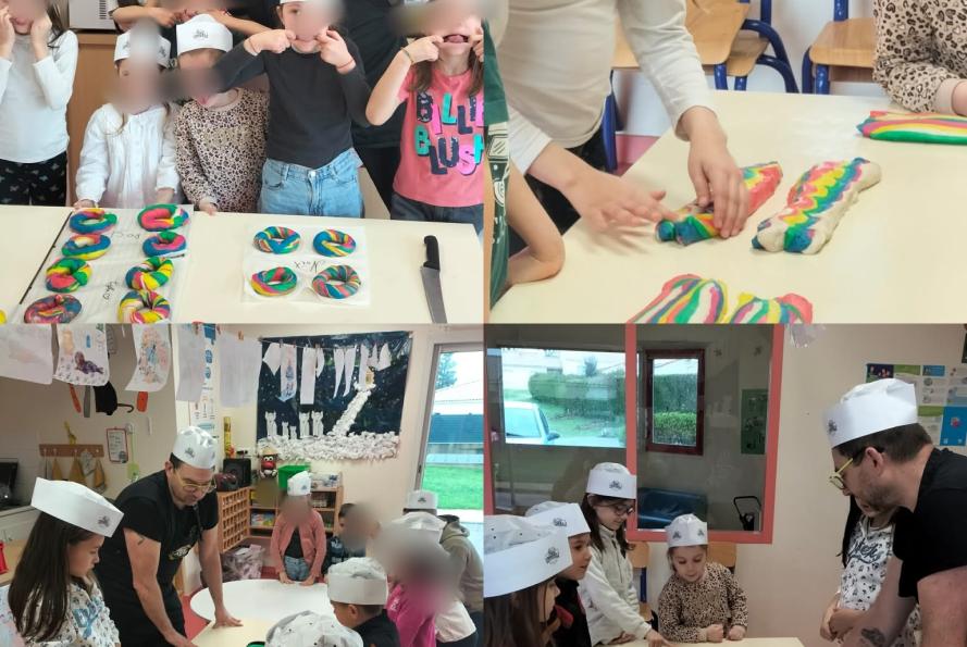 Ce mercredi, les enfants des P'tites Frimousses étaient ravis d'accueillir Noël de Mont Bagel pour une matinée de cuisine colorée ! Les enfants sont rentrés à la maison avec leurs magnifiques raimbow bagel !! Un très bon de partage ! Merci à Noël pour sa gentillesse avec les enfants et l'équipe!