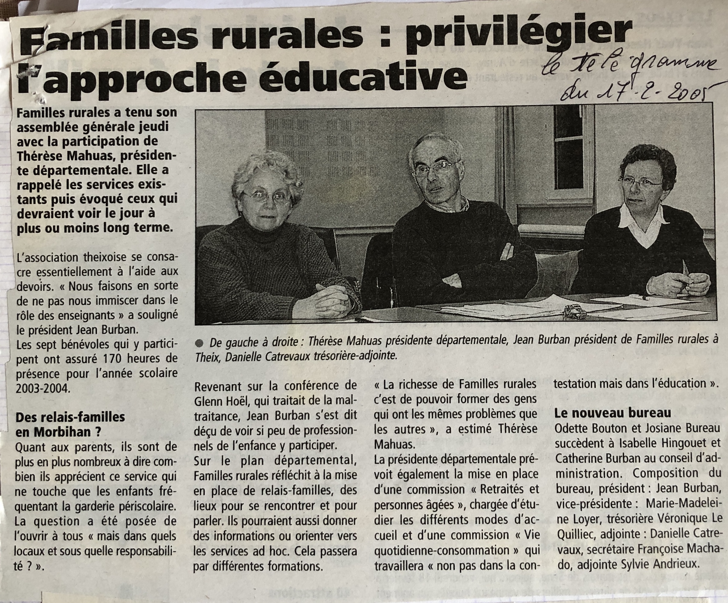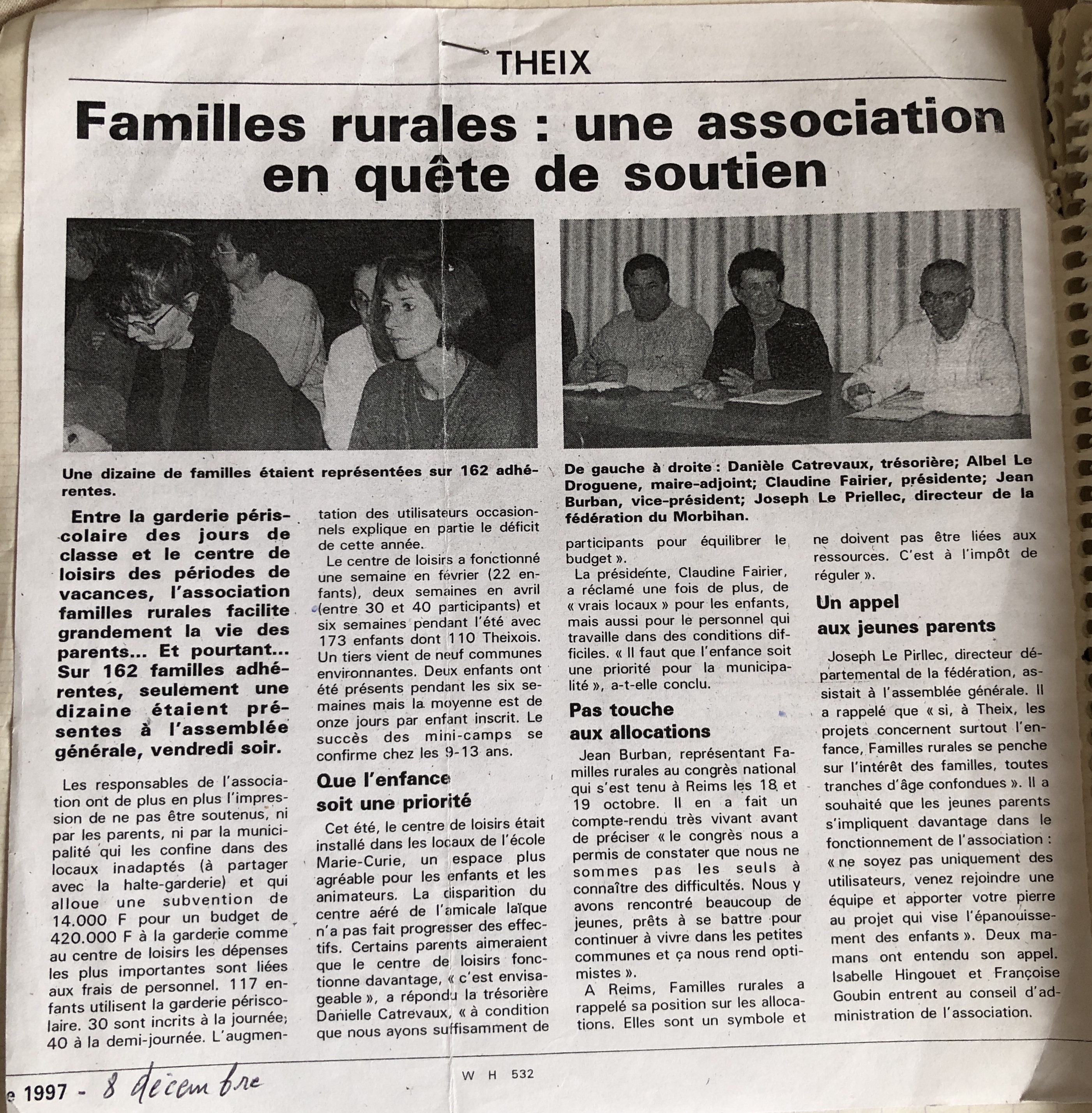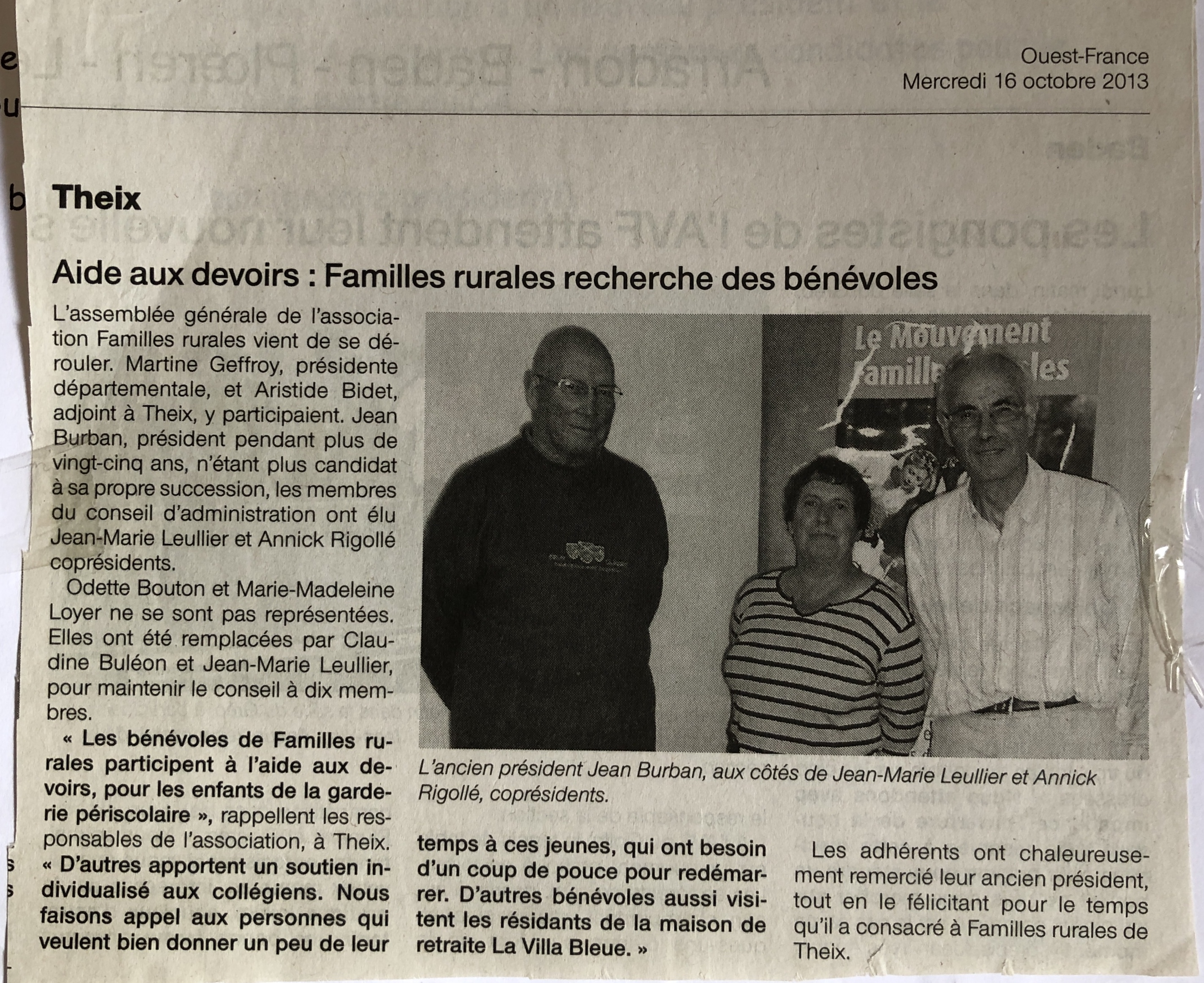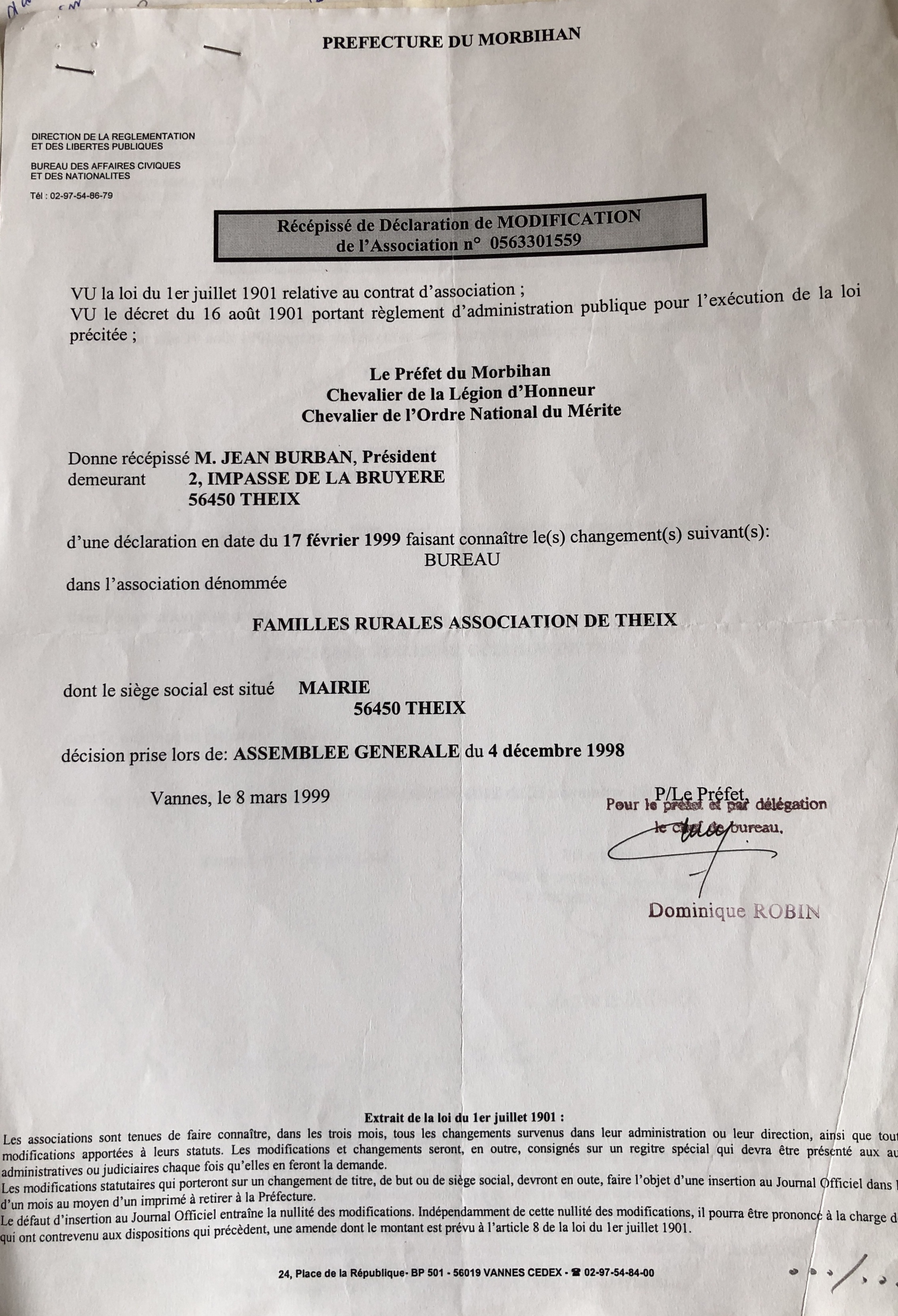 Le 8 mars 1999, l'association change de dénomination et s'appelle Familles Rurales association de Theix.