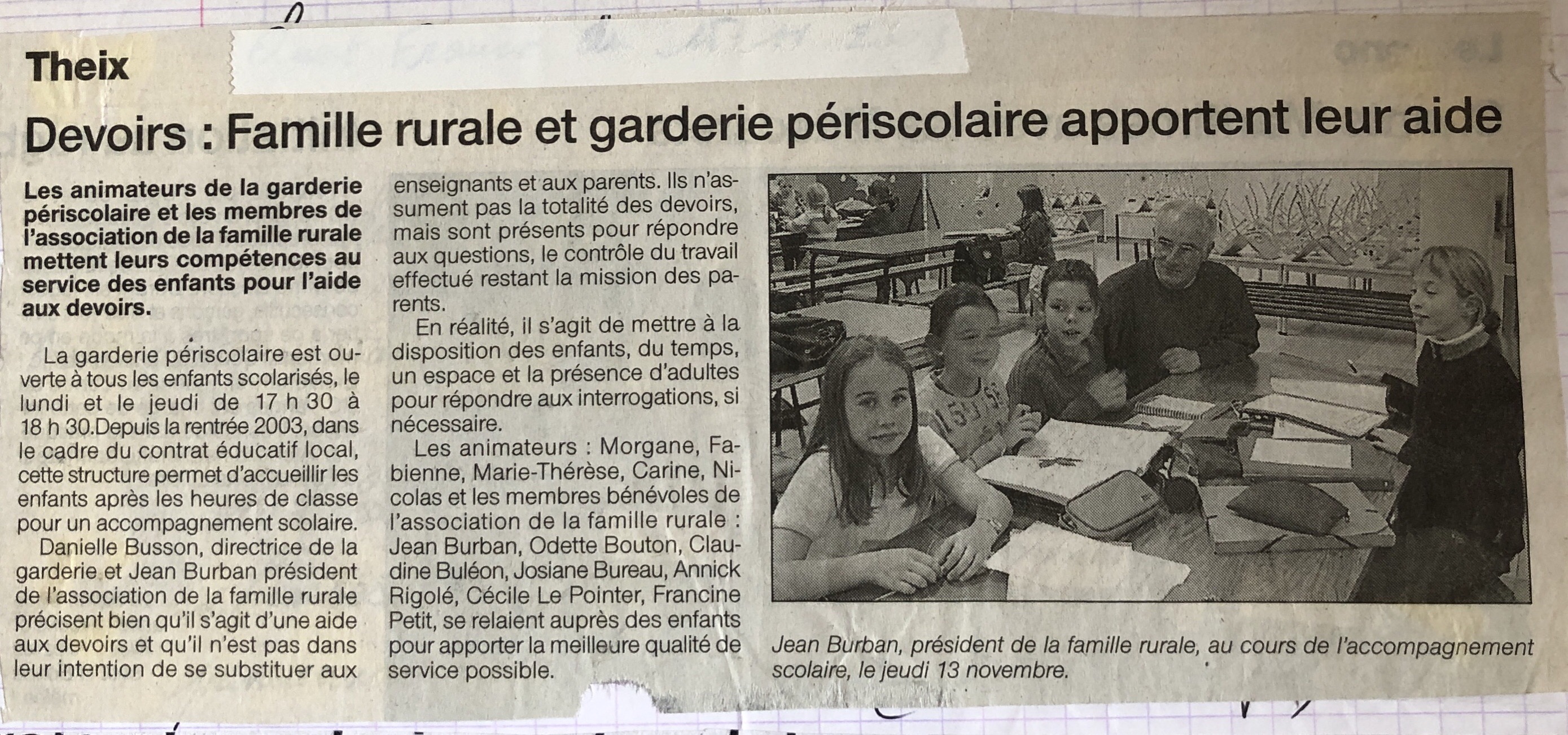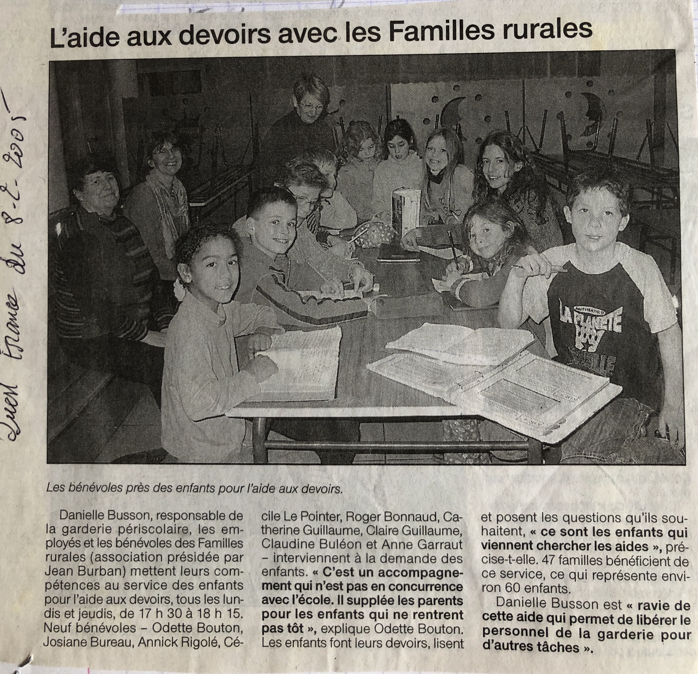Le 13 novembre 2003, l'aide aux devoirs démarre sur l'initiative d'Odette Bouton avec des bénévoles disponibles jusqu'à 10 par séance.