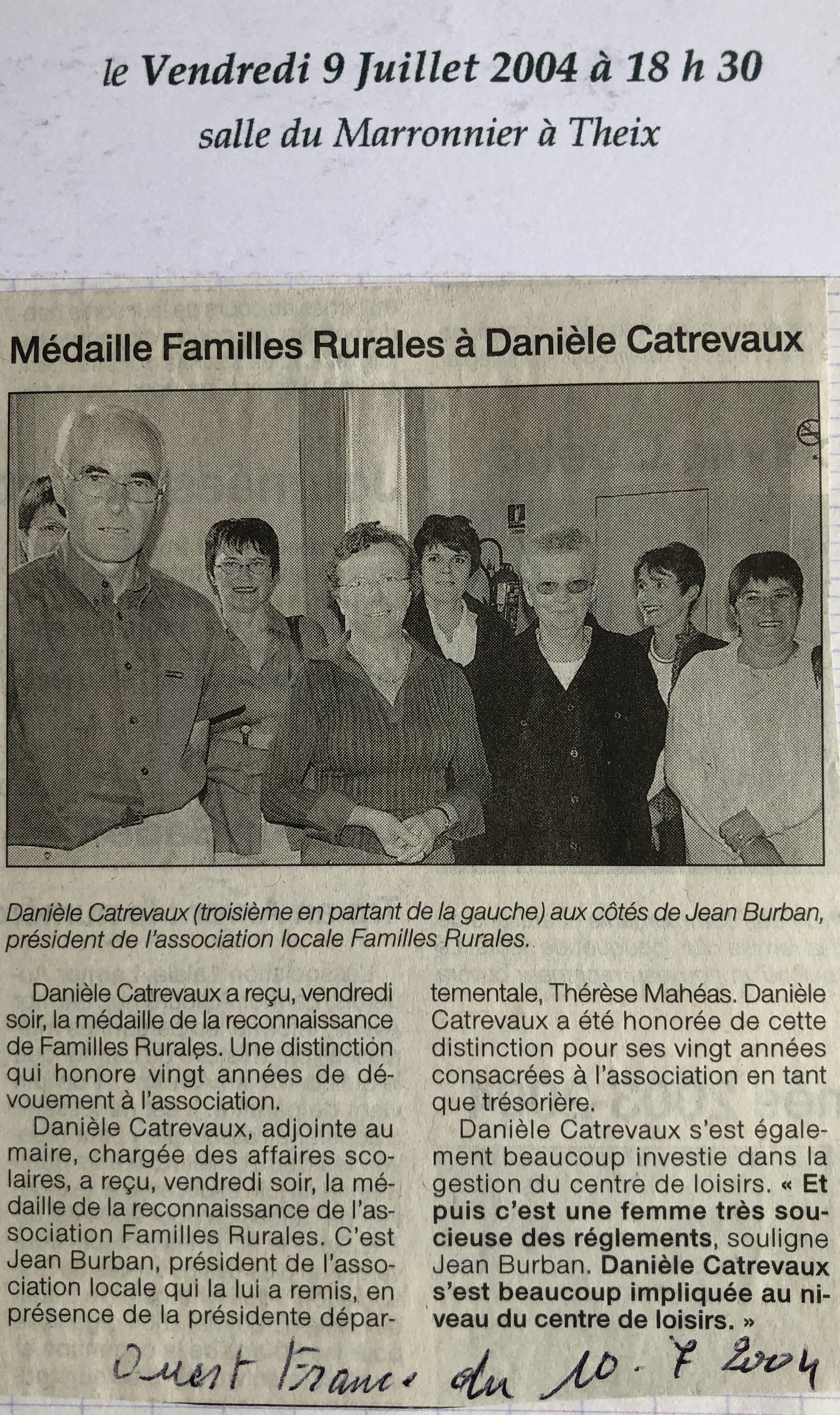 Le 9 juillet 2004, la médaille de la famille est donnée à Danielle Catrevaux, trésorière et gestionnaire de l'association pendant 12 ans.