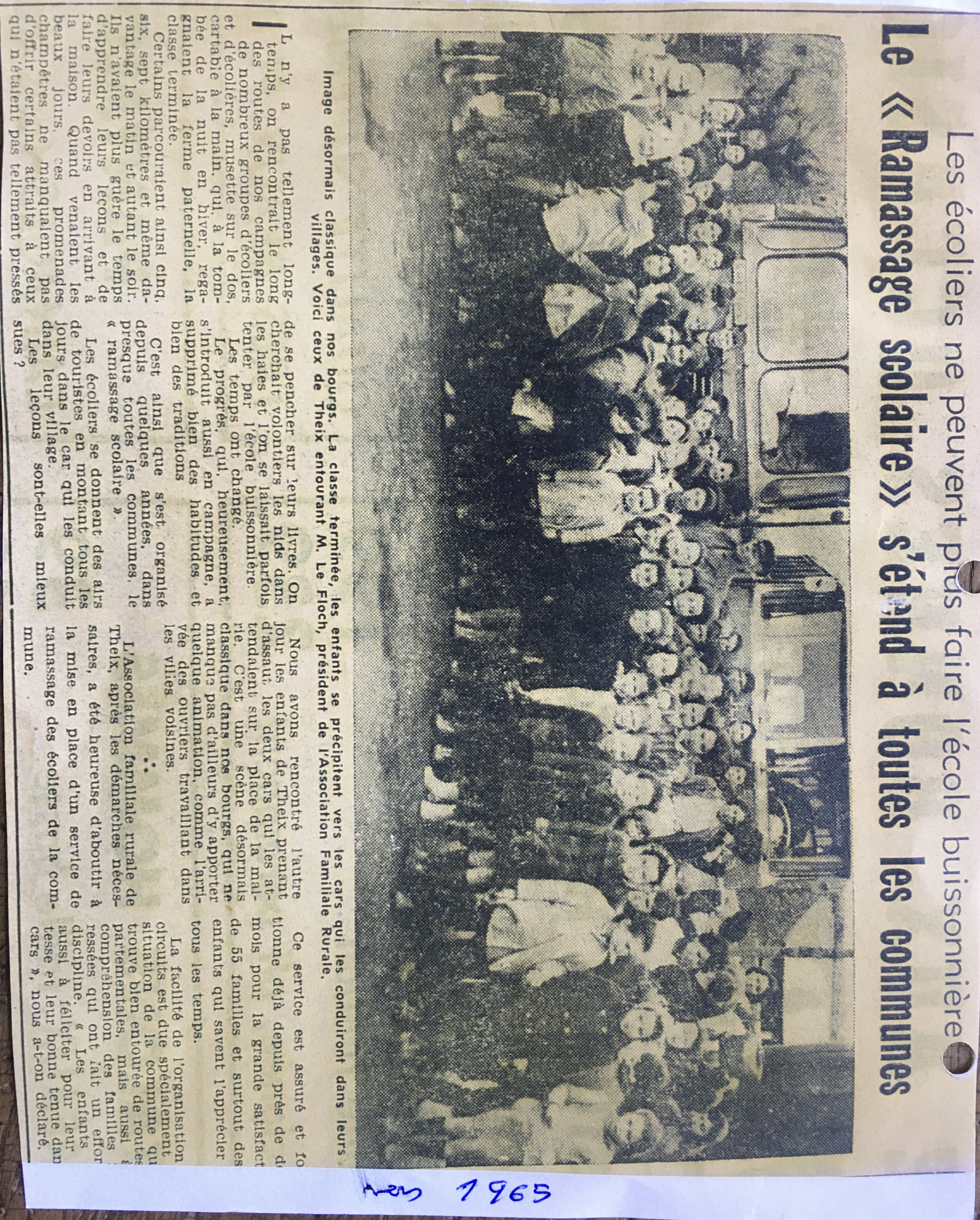En 1964, Familles Rurales met en place un ramassage scolaire dans les villages de la commune après le remembrement qui a permis d'avoir des voies carrossables pour le passage des cars scolaires.