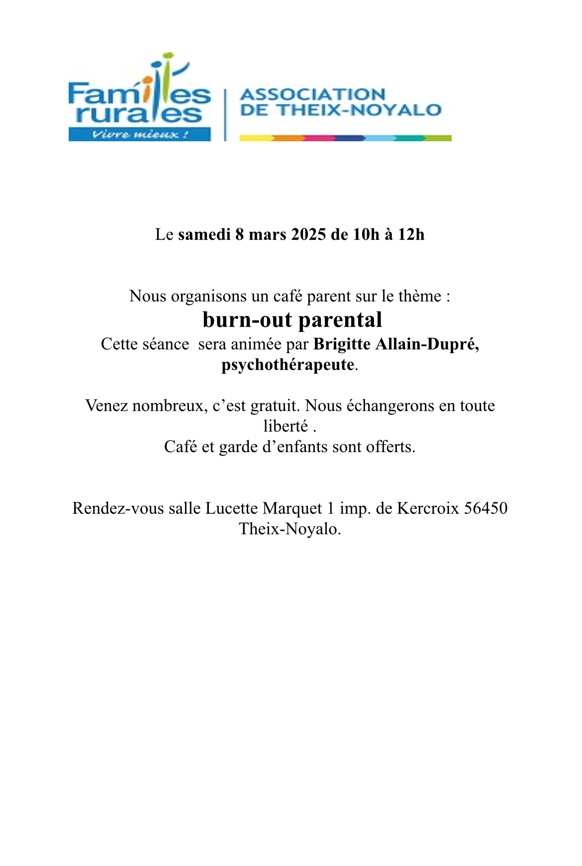 Café et garde d’enfants sont offerts.