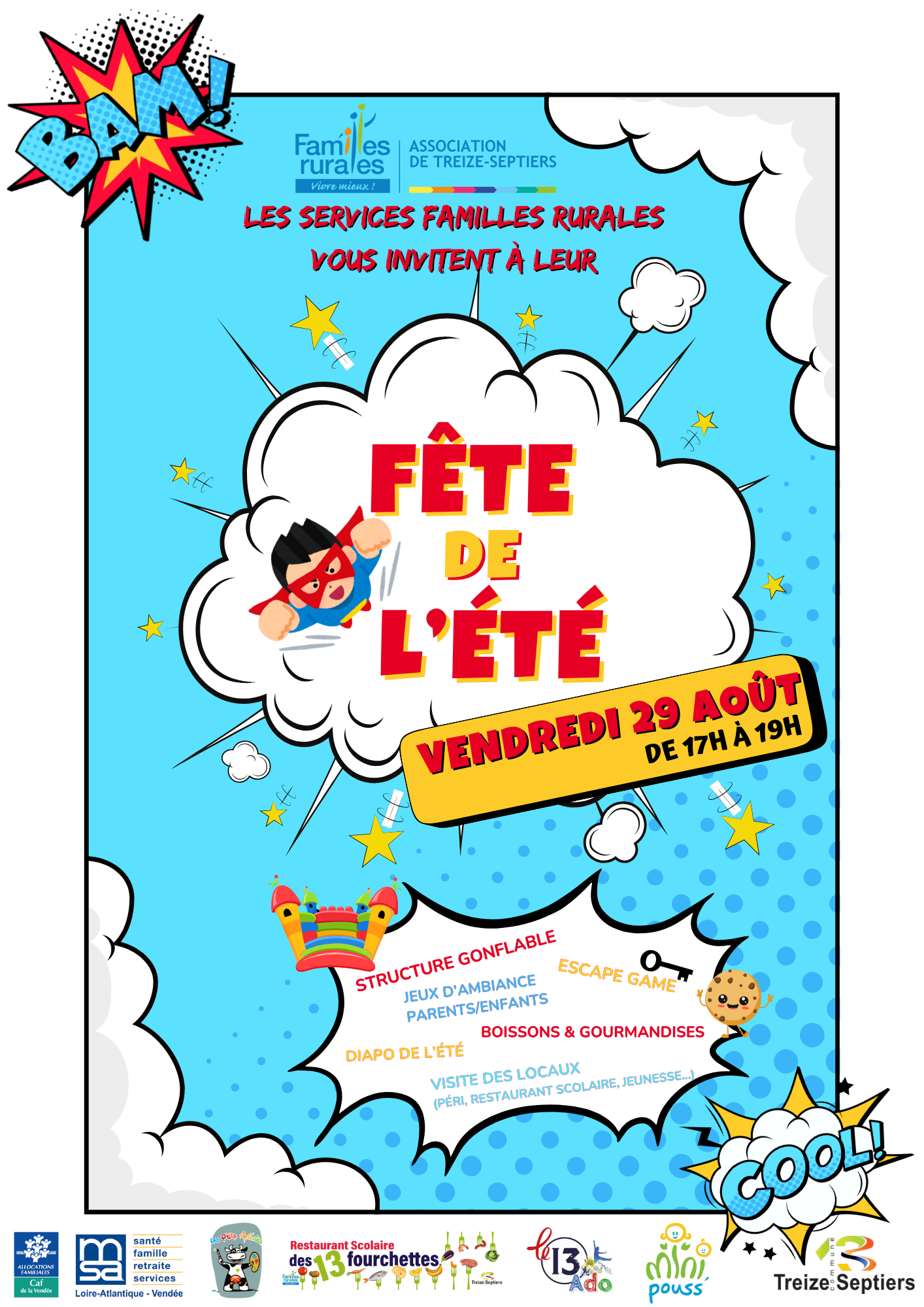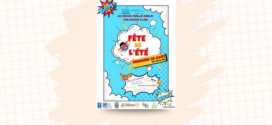 L’équipe de l’Accueil de Loisirs "Les P'tits Artistes" et du Service Jeunesse "Le 13 Ados" a le plaisir de vous inviter à partager un moment festif pour marquer la fin de l’été.