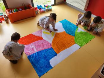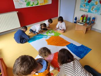 Préparation d'une grande fresque par les grands pour l'image de fond du site internet