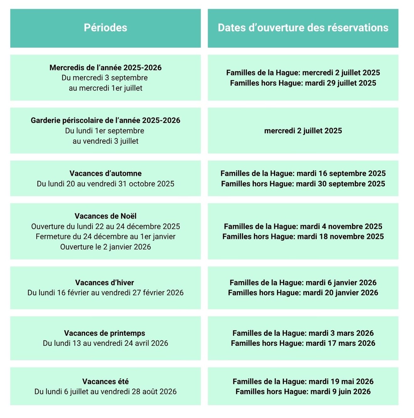 Les inscriptions des vacances pour l'accueil de loisirs suivant le calendrier suivant: