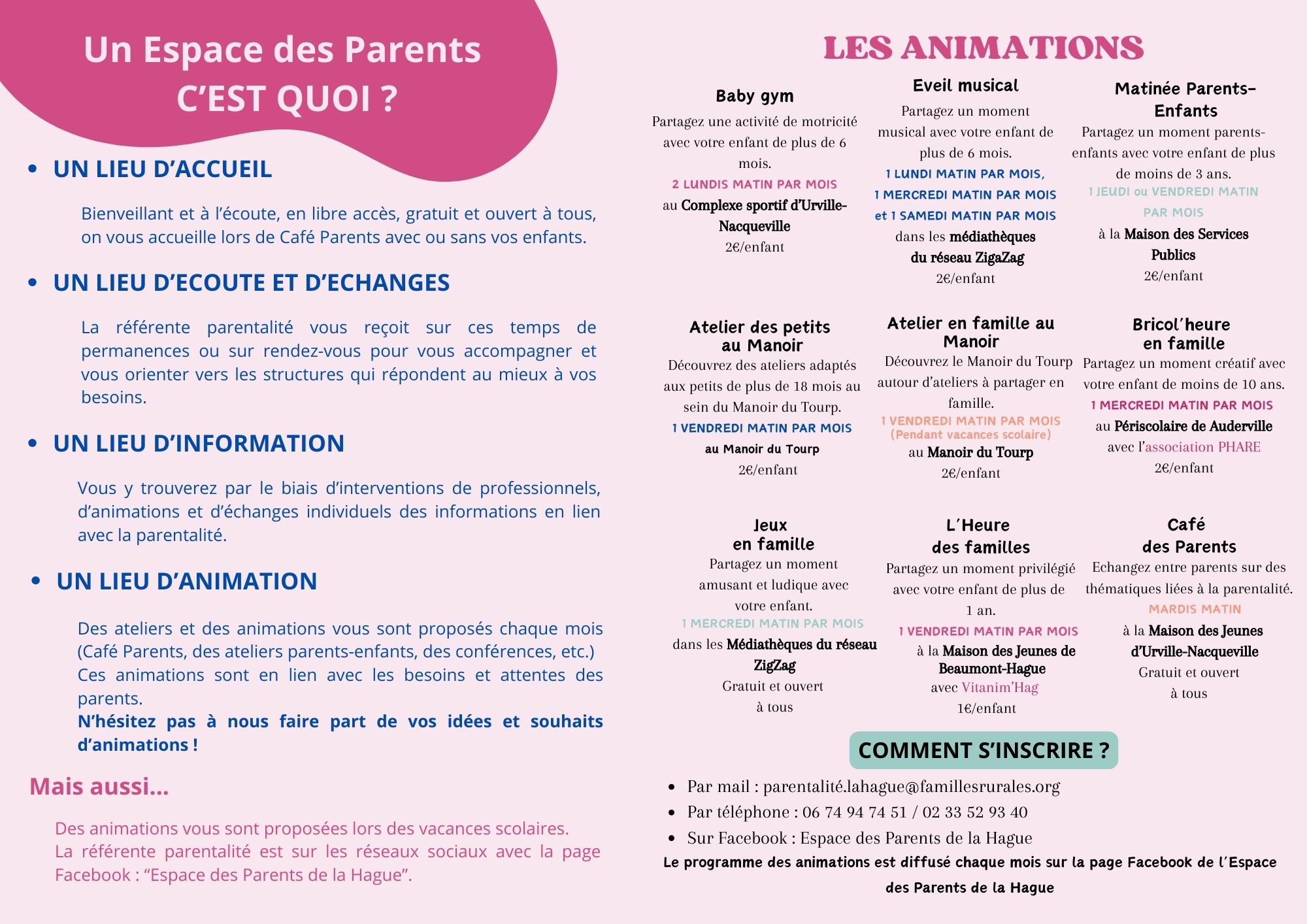 Adresse mail de contact : parentalite.lahague@famillesrurales.org