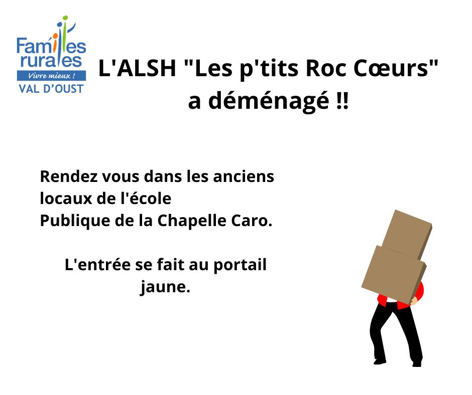 Changement d'Adresse Pour le Centre de Loisirs "Les p'tits Roc Coeurs"