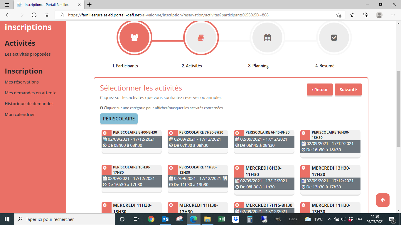 Cliquez sur l'activité que vous souhaitez choisir. Par exemple "Périscolaire".
