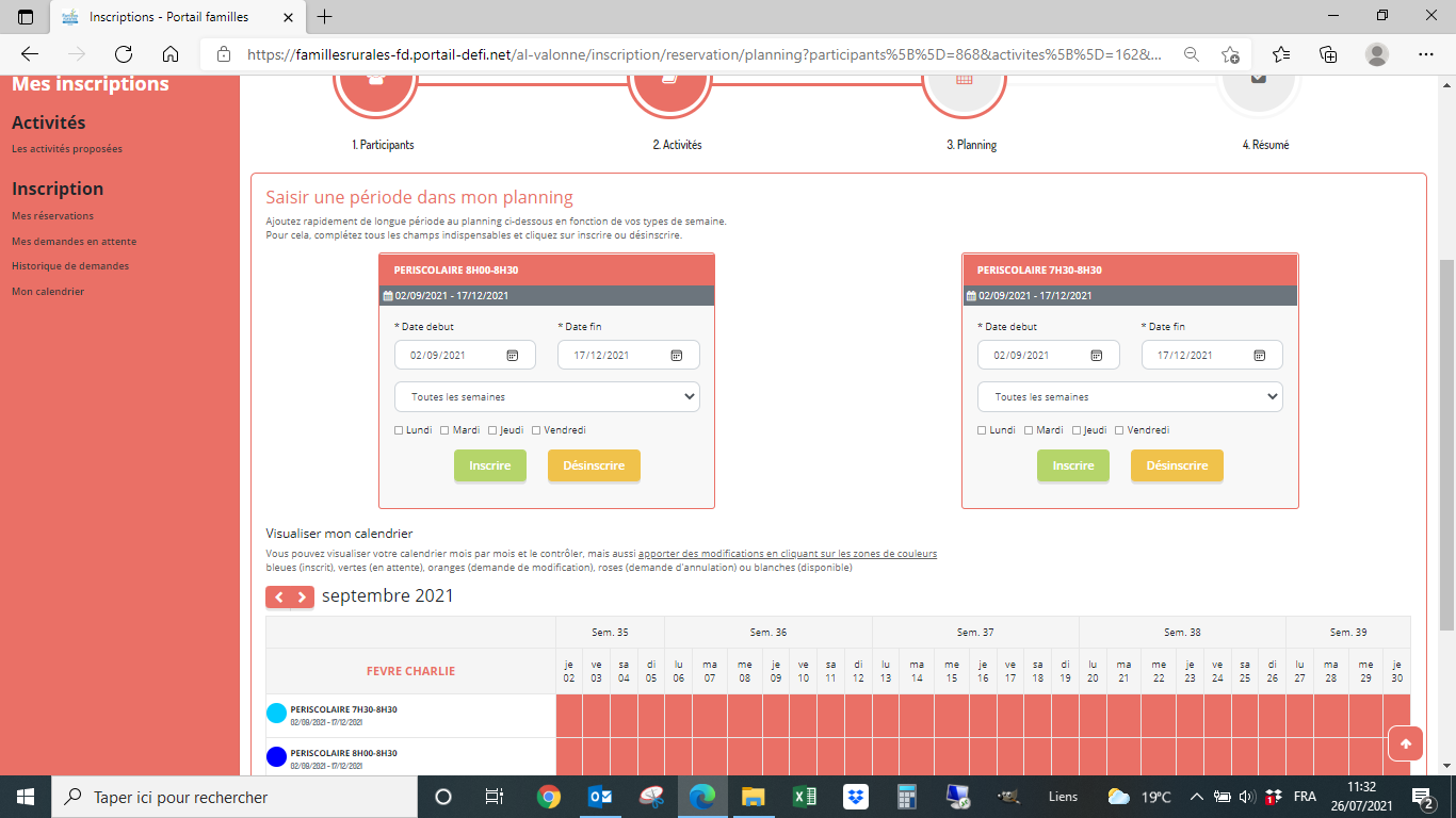 Puis cliquez sur la période d'inscription (exemple : " Midi "). Vous pouvez sélectionner plusieurs périodes à la fois.