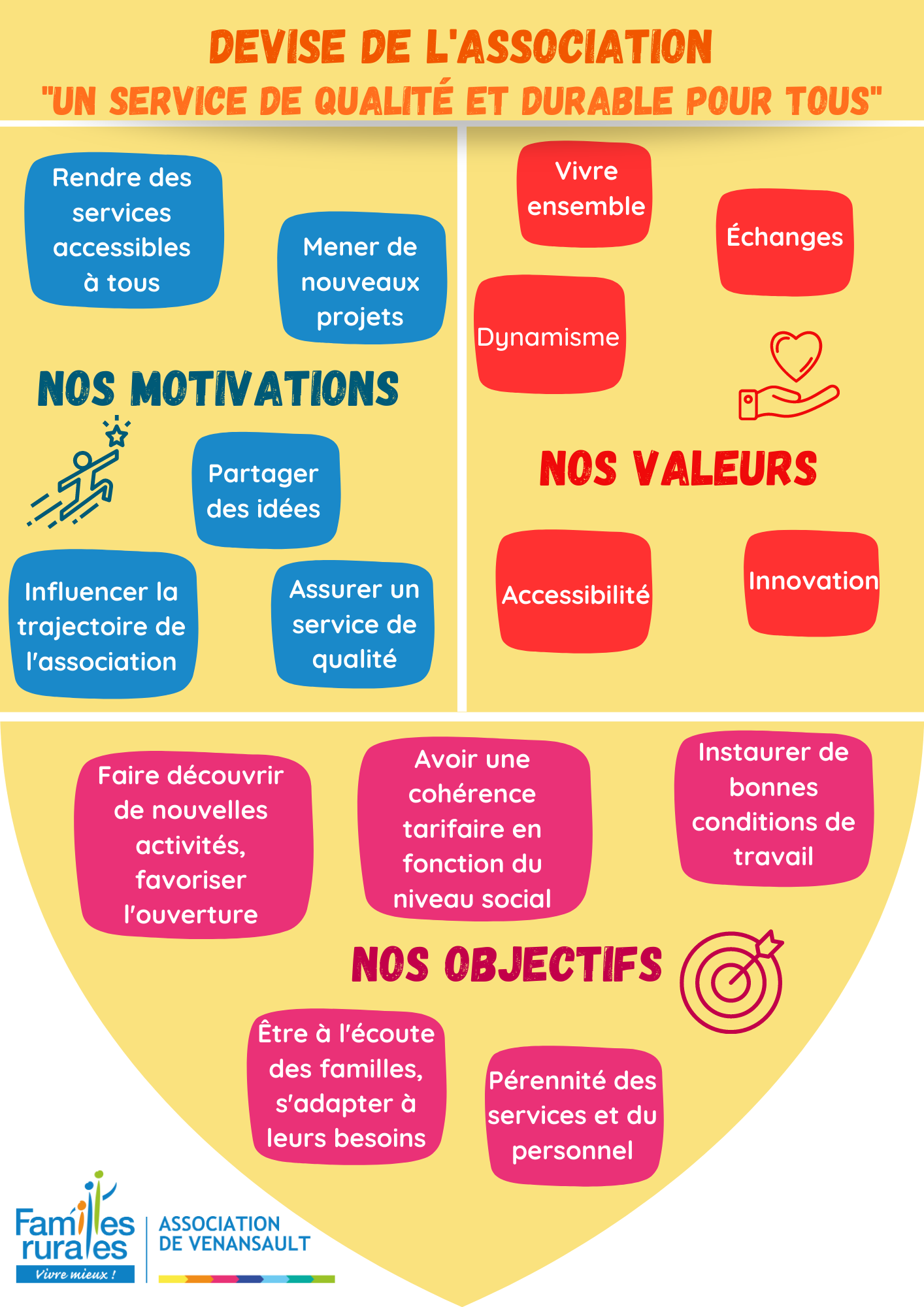 La fédération Familles RuralesL'association Familles Rurales de Venansault adhère au projet fédéral qui souhaite développer des valeurs qui placent : La famille au coeur de la société L'association comme espace d'initiatives et de responsabilités Le milieu rural comme espace de viePour en savoir plus... https://www.famillesrurales.org/ https://www.famillesrurales85.org/ Familles Rurales VenansaultNous nous engageons localement à travers notre projet associatif réécrit en 2022 !